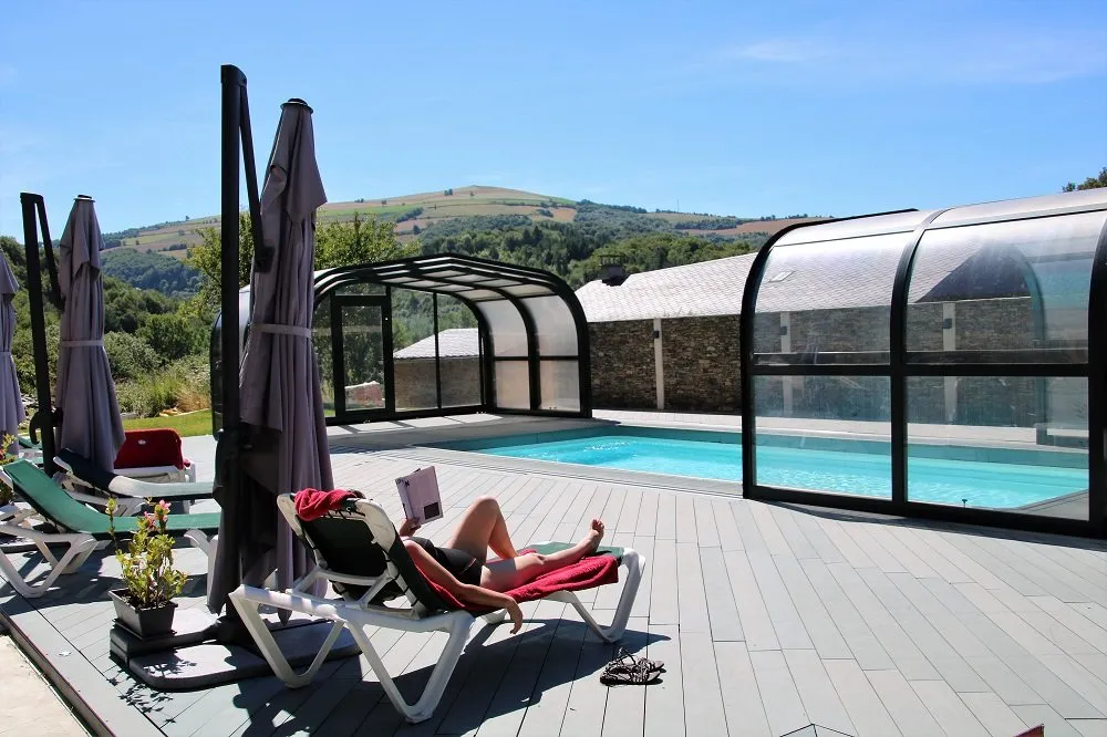 Una piscina cubierta y calentada te espera al lado de la muy bonita terraza del hotel, rodeada de antiguos magnolias con vista esplendida al campo.