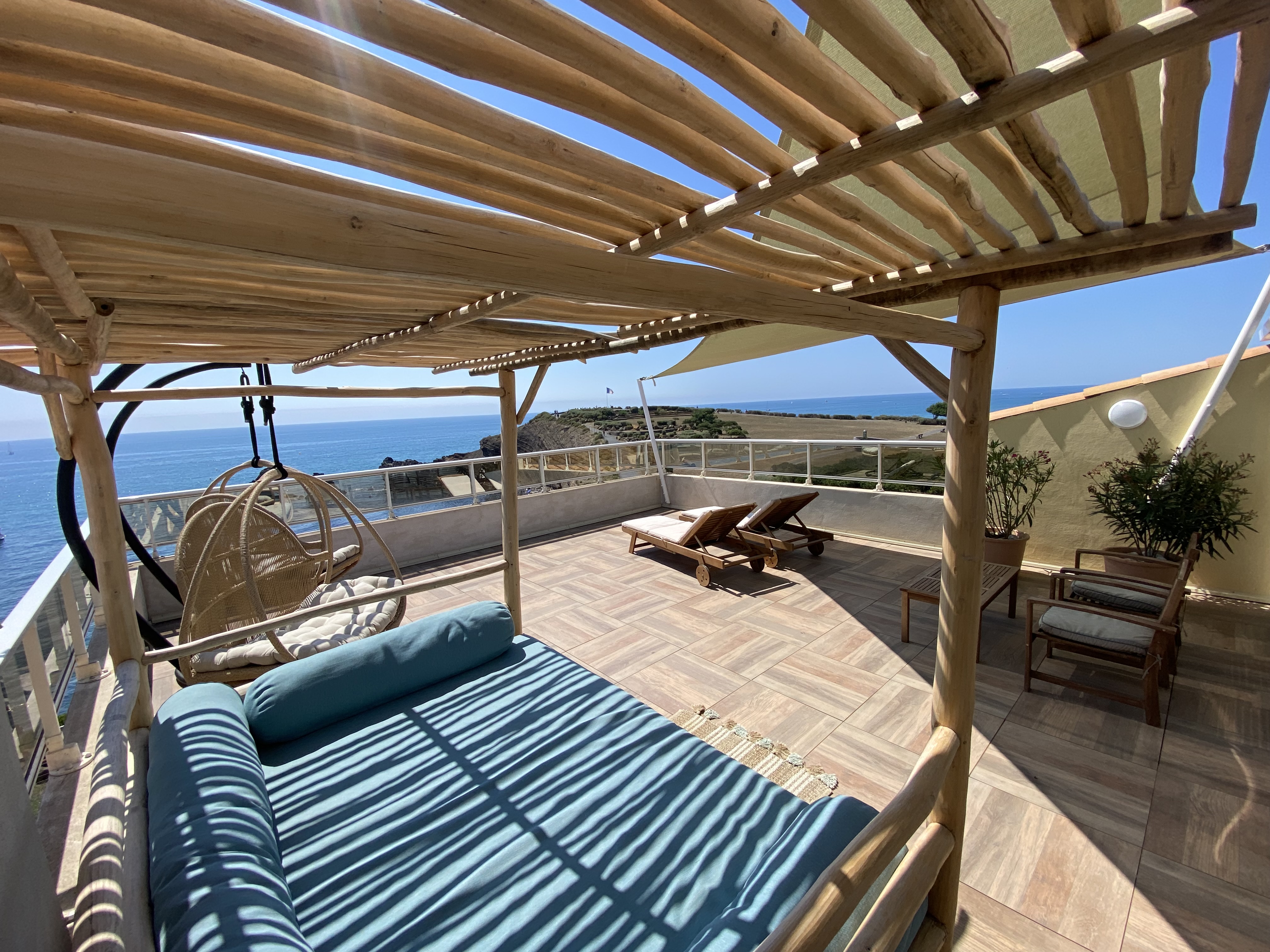 Rooms with sea view or view of Fort Brescou with private terrace.