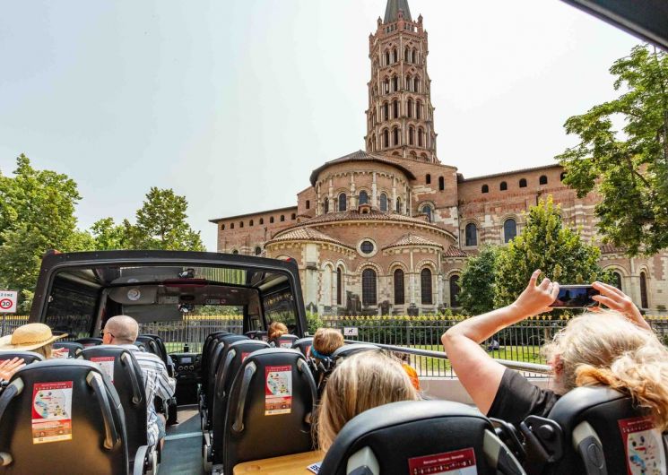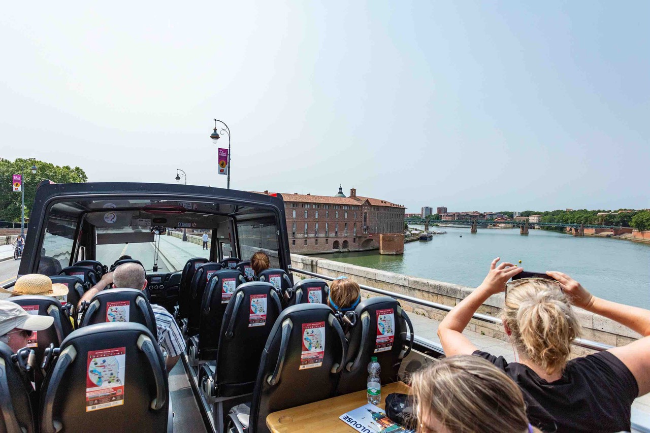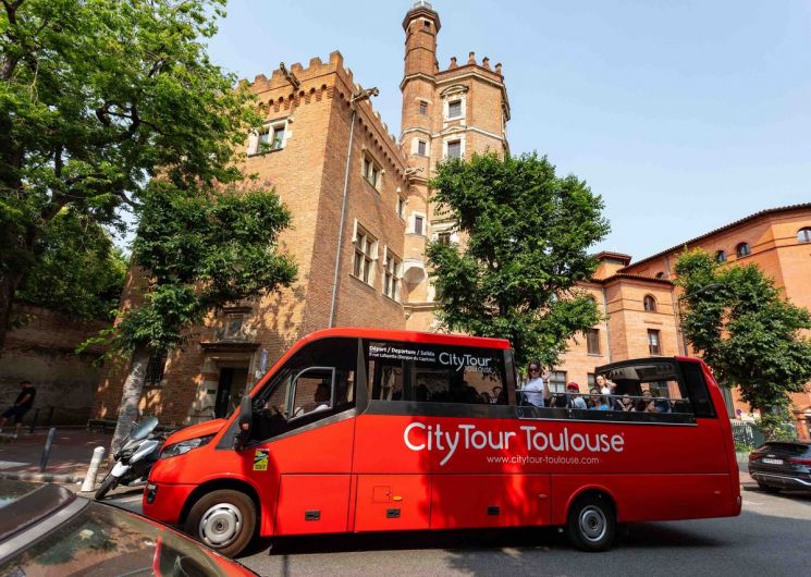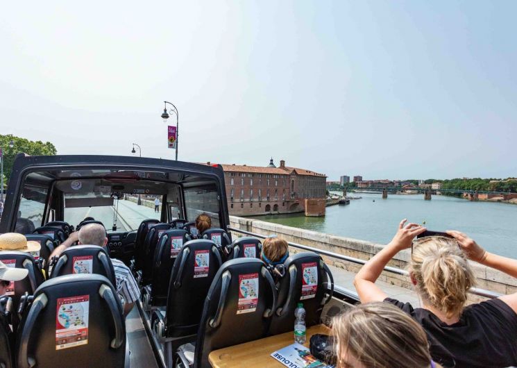 Desde 2013, City Tour Toulouse le muestra la fascinante historia de la Ciudad Rosa a bordo de un autobús panorámico al aire libre. Desde la comodidad de su asiento, admire los principales lugares y monumentos históricos mientras disfruta de una audioguía disponible en 8 idiomas (francés, inglés, español, alemán, italiano, ruso, chino y japonés). ¿Por qué elegir el City Tour? La manera ideal de descubrir Toulouse en un tiempo récord. Ya sea en pareja, en familia o con un grupo de amigos, esta visita guiada es perfecta para un primer acercamiento a la ciudad o para redescubrir Toulouse desde un nuevo ángulo. En el programa de su visita: La majestuosa Basílica de Saint-Sernin La catedral de Saint-Etienne La famosa Place du Capitole El Canal du Midi, patrimonio mundial de la UNESCO Los muelles del Garona Las emblemáticas casas de la ciudad, parques y jardines Anécdotas exclusivas sobre la aviación y el rugby en Toulouse Preparados, listos, ¡flash! Información práctica -Punto de salida: 2 rue du Poids de l’Huile (frente al Capitole) -Accesibilidad: El autobús es accesible para las personas con discapacidad visual, auditiva y mental (las tarifas PMR también se aplican a los acompañantes). Se admiten perros pequeños a bordo. -Oferta embajador: ¿Es usted residente en Haute-Garonne? Aproveche nuestra oferta especial: ¡compre 2 billetes y llévese el 3º gratis! Haga descubrir su ciudad a sus amigos y familiares. -¿Sois un grupo? Familia, amigos o empresa, ¡pueden privatizar el autobús! Póngase en contacto directamente con Toulouse Welcome – CityTour para conocer nuestras ofertas a medida para grupos. Consejo: reserve en línea, el autobús suele estar lleno 😉 Qué hacer en Toulouse ¿Qué ver en Toulouse? El City Tour tiene todo lo que necesita para pasar un día inolvidable en la Ville Rose. Reserve ya su plaza y déjese guiar por los tesoros de Toulouse.