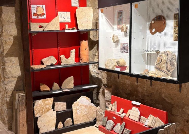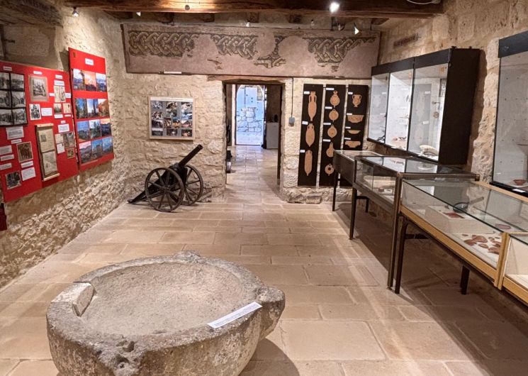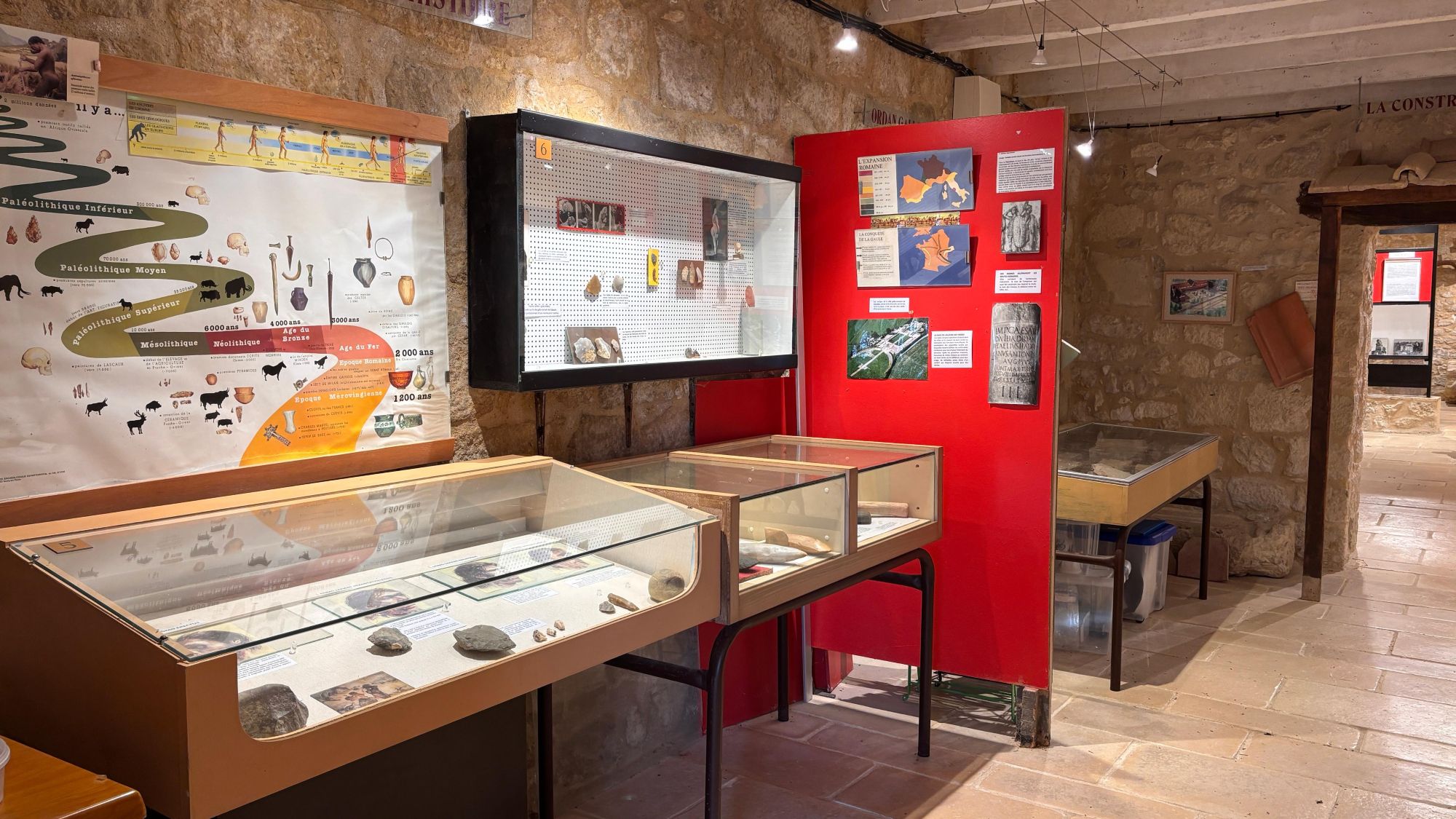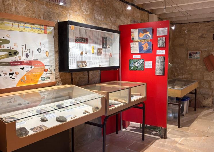Les collections présentées illustrent une occupation humaine continue, depuis la Préhistoire jusqu’à l’époque contemporaine. Le visiteur peut y découvrir des outils en pierre taillée, des objets de la vie quotidienne gallo-romaine, des éléments architecturaux antiques, des fragments de mosaïques, ainsi que des vestiges témoignant de l’évolution des modes de vie ruraux. Parmi les pièces remarquables figurent notamment des molaires de gomphotherium, vestiges exceptionnels d’un mammifère préhistorique vieux de plusieurs millions d’années.