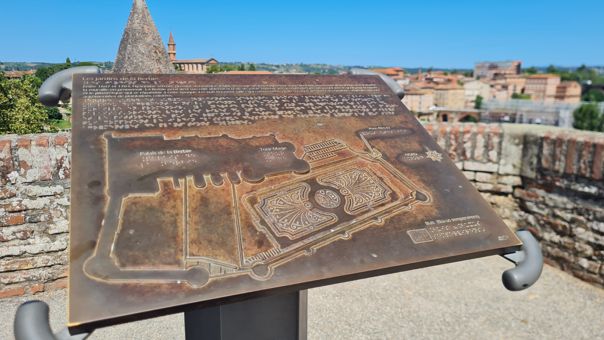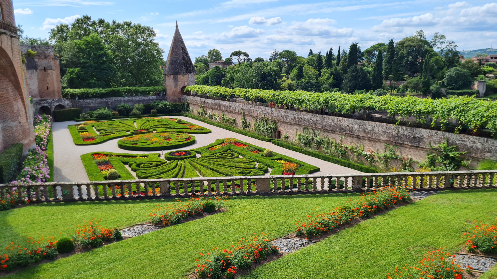El palacio episcopal de la Berbie se encuentra junto a la poderosa catedral Sainte-Cécile. Un magnífico jardín se esconde detrás de estas construcciones de aspecto militar: los jardines del Palacio, uno de los lugares más visitados de la ciudad.