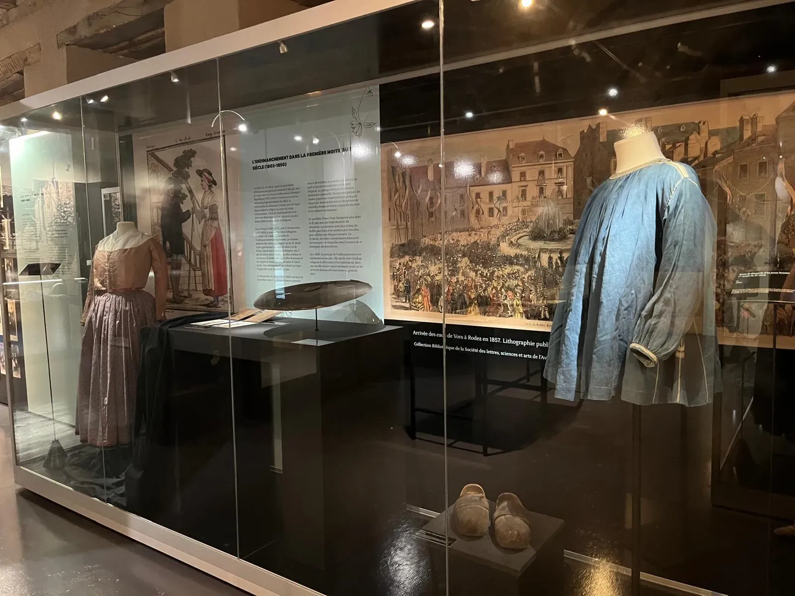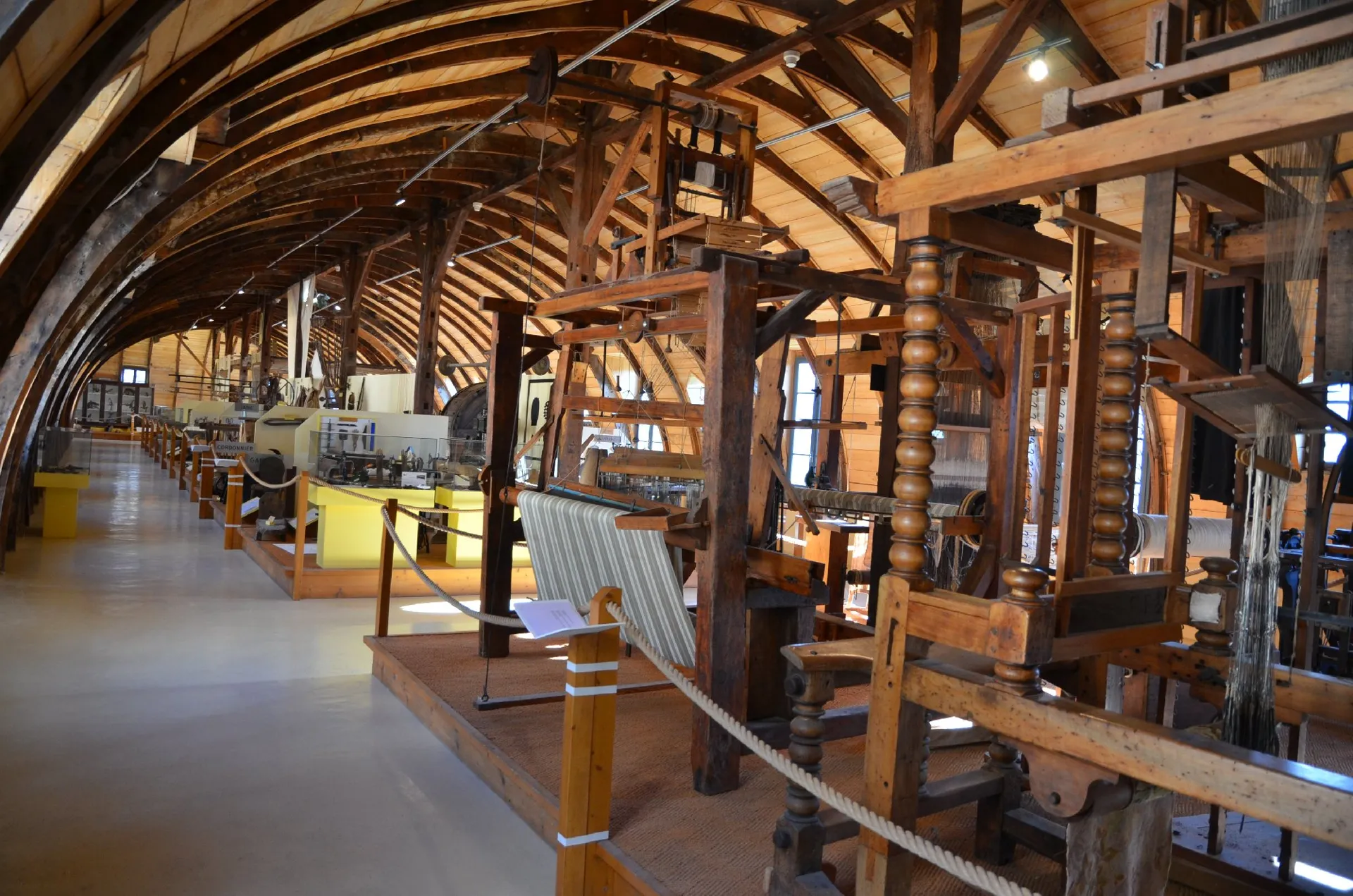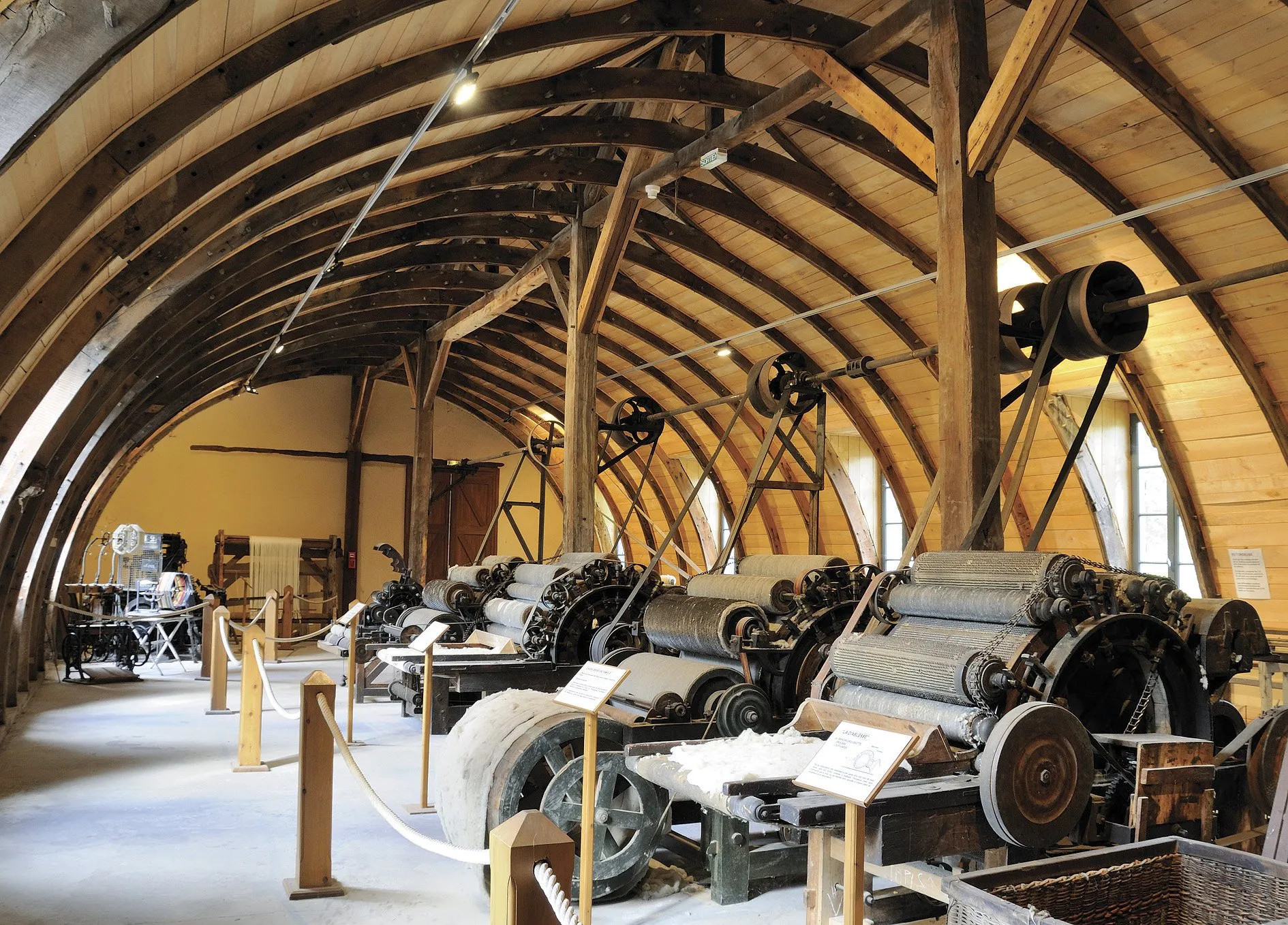 Museo del Rouergue Artes y Oficios. En una antigua fábrica de hilados de lana, maravillosa por su armazón de plena cimbra y sus columnas centrales, la exposición presenta máquinas, testigos de la tradición rouergate.