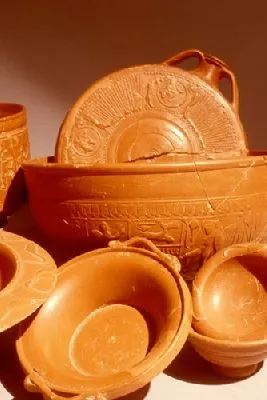 Taller de alfarero, viviendas, santuarios galorromanos. Visita comentada de una parte del pueblo de alfareros galo-romanos con vista a los santuarios, los hornos de cocción, los talleres y las viviendas.