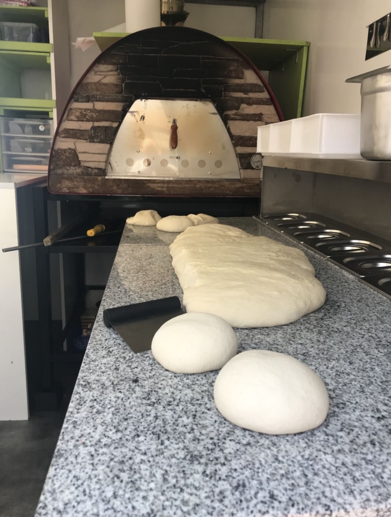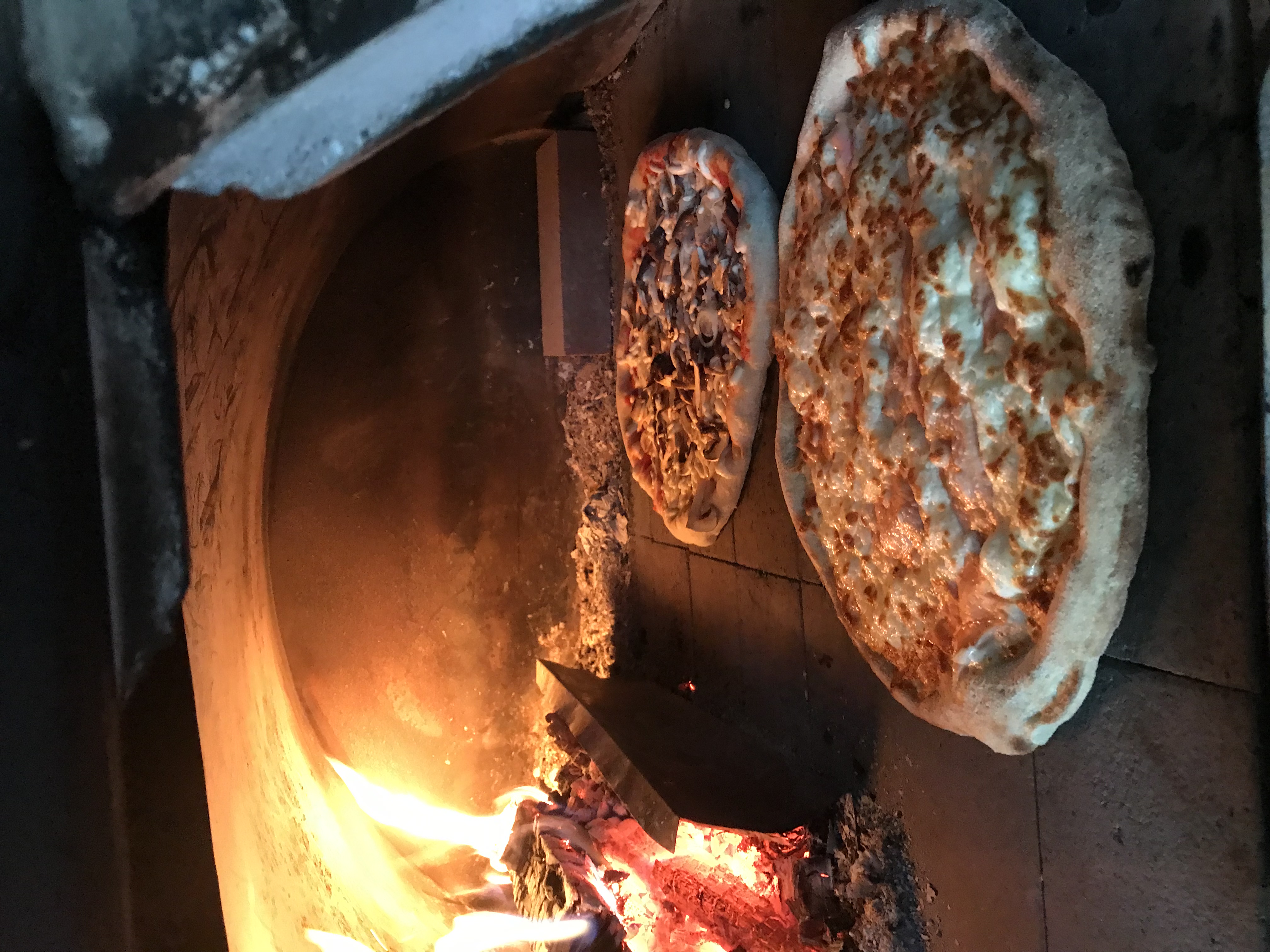 Pizzas à emporter cuites au feu de bois. Utilisation de farine biologique locale provenant du Moulin de la Borie.