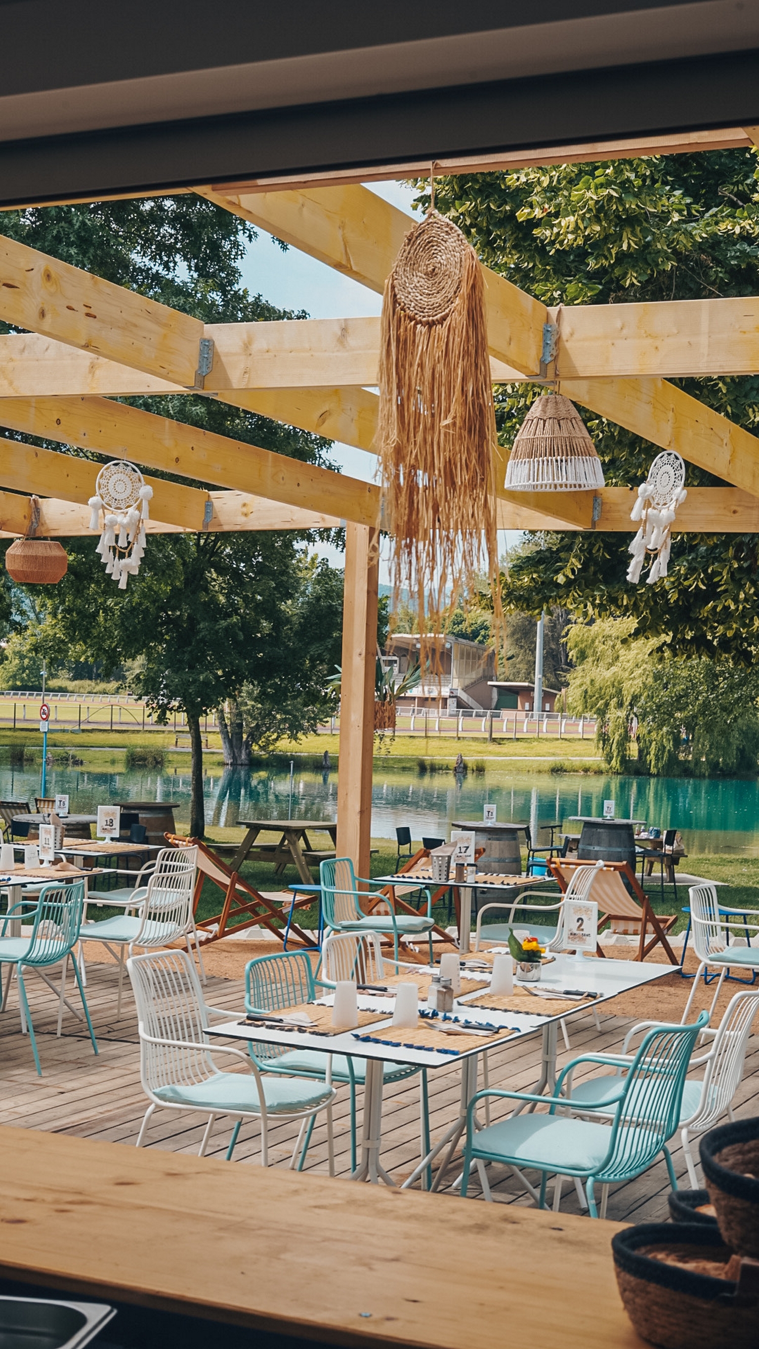 La terraza junto al lago es perfecta para comer al sol o disfrutar de los conciertos y fiestas nocturnas que se organizan durante todo el verano. También puede alquilar remos y relajarse con los pies en el agua.