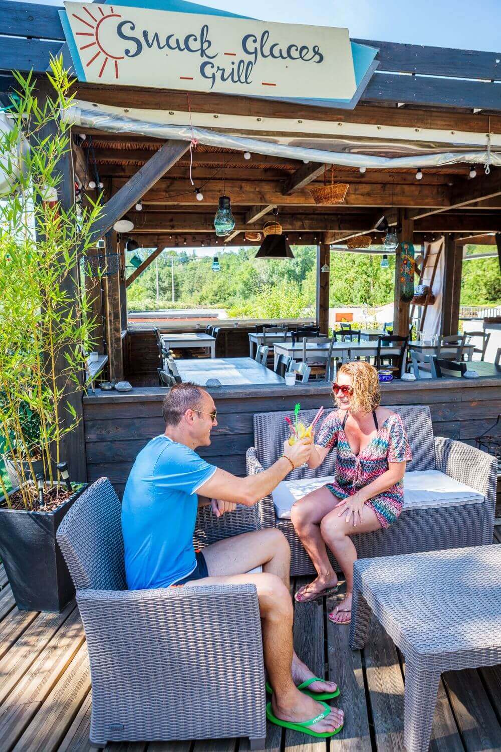 Restaurante tradicional tipo brasserie en el corazón del camping “le soleil des bastides”, abierto a todos.
