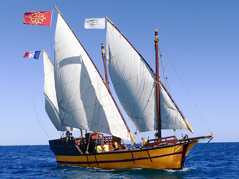 Sailing trips departing from Le Grau d’Agde on an exceptional three-masted lateen sailboat.