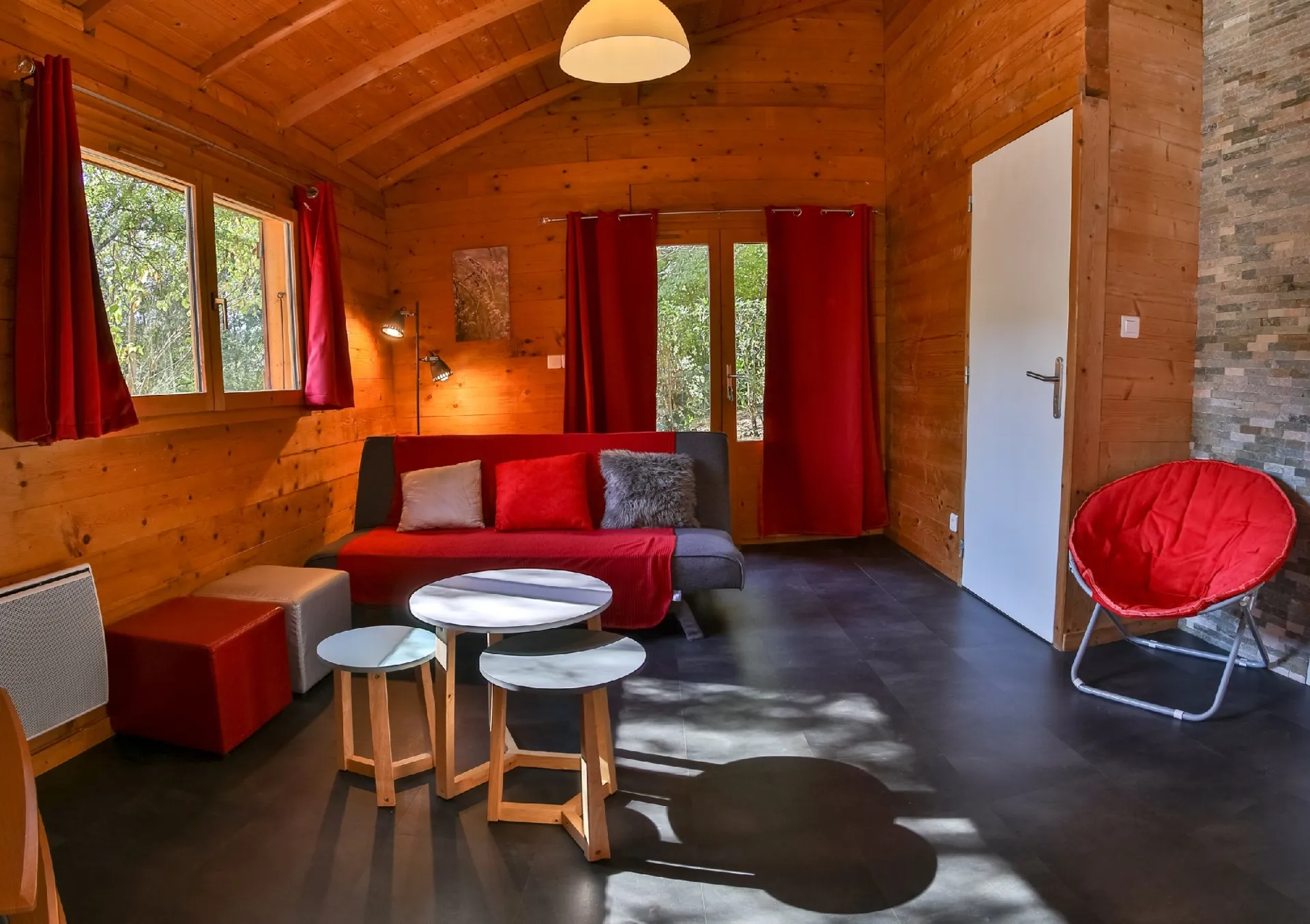 Close to Sauveterre de Rouergue, one of the Most Beautiful Villages of France, Les Chalets de La Gazonne are hidden in on a hillside in a sunny green setting.