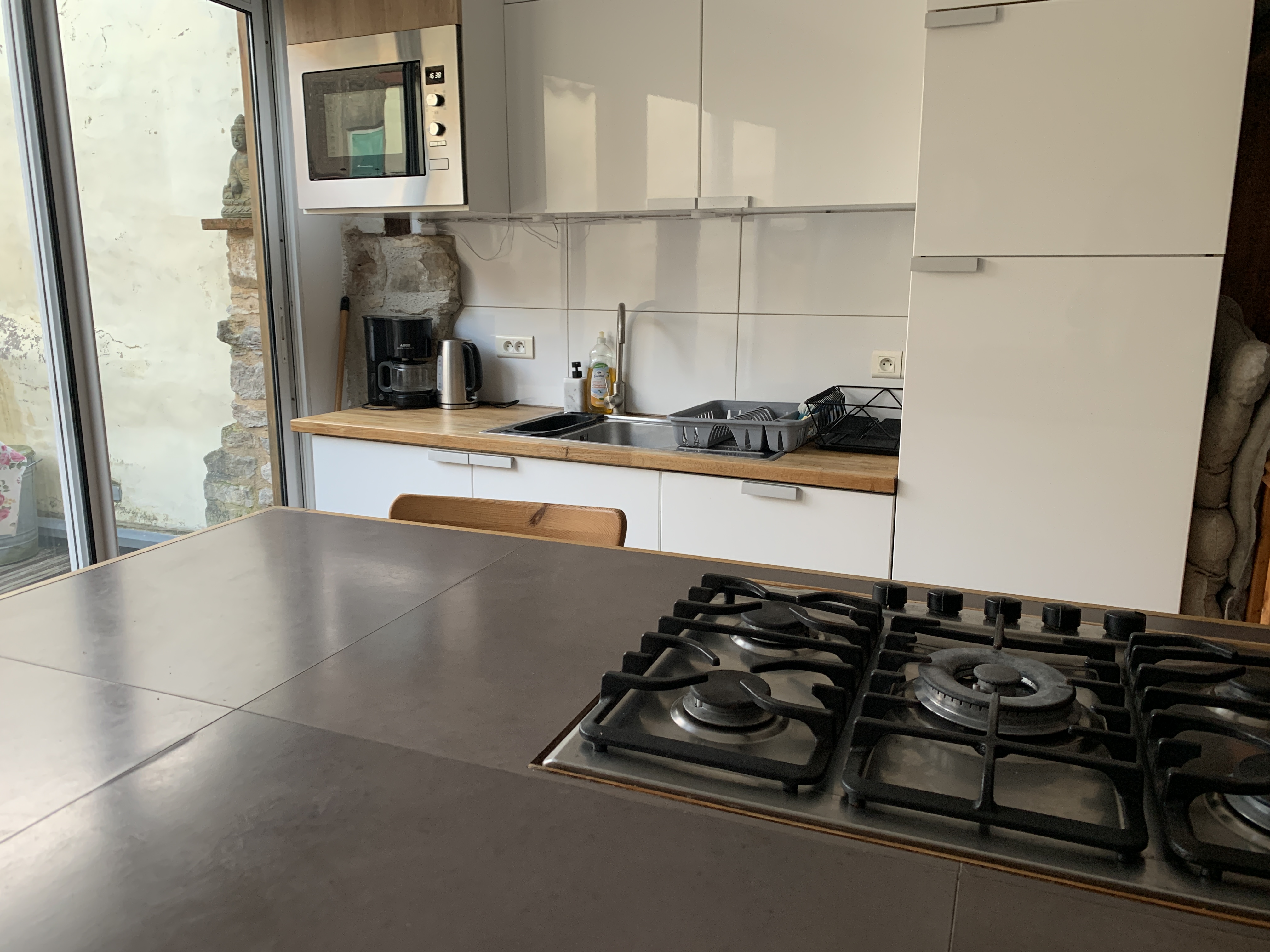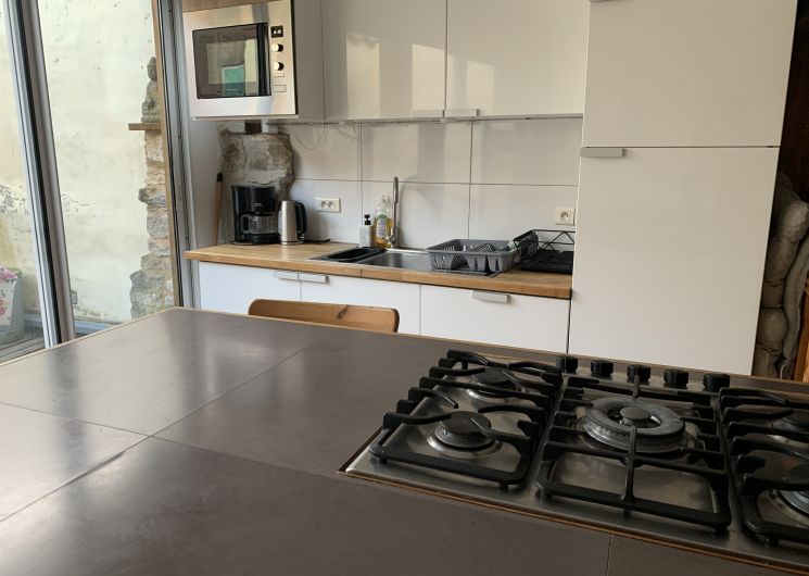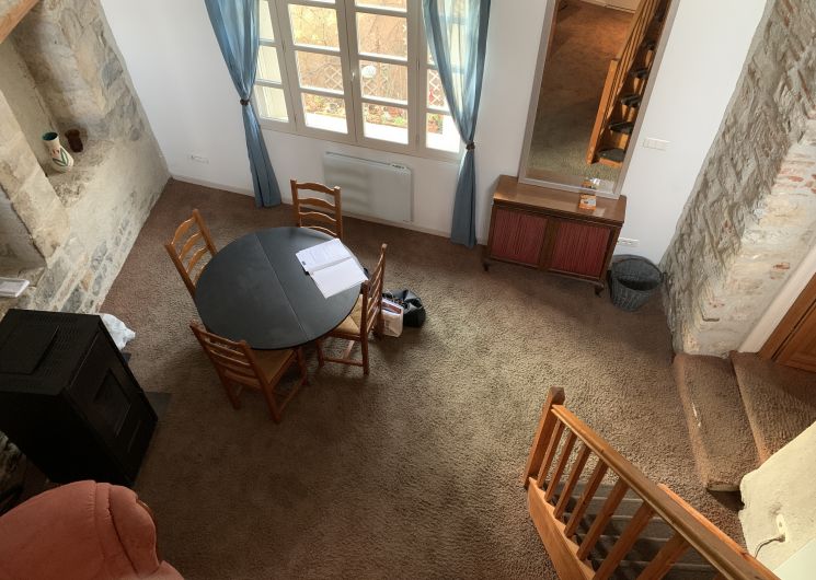 L’appartement, pour 4 personnes, se trouve au 2ème étage d’un petit immeuble comprenant l’habitation du propriétaire au 1er étage. L’accès par escalier vous amène sur un palier où se trouve la porte l’entrée du logement qui comprend : un séjour (33 m2) avec canapé, TV, poêle à granulés, une table de salle à manger. La cuisine (combiné four / micro-ondes lave-vaisselle, réfrigérateur-congélateur), se trouve en mezzanine avec accès direct sur un patio privé (salon de jardin, grill électrique). 1 chambre ( 1 lit 180, moquette), 1 chambre (2 lits 90 jumelables, moquette), 1 salle d’eau et 1 WC indépendant.