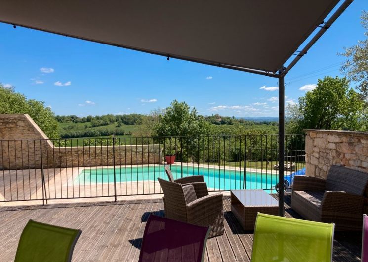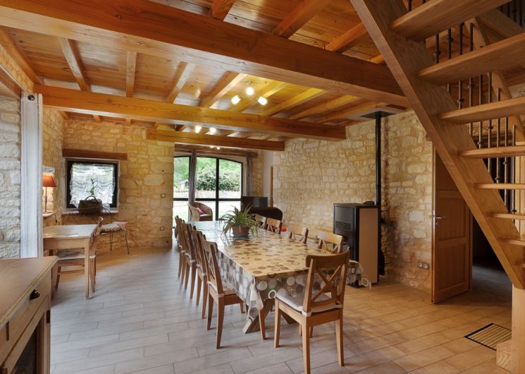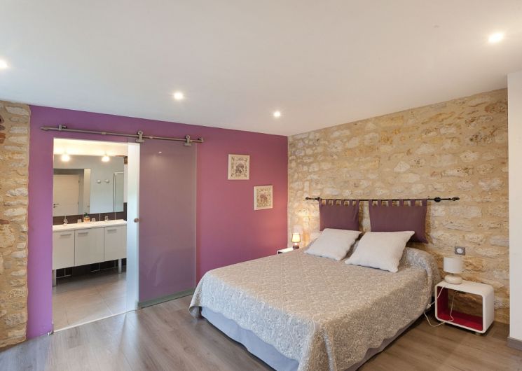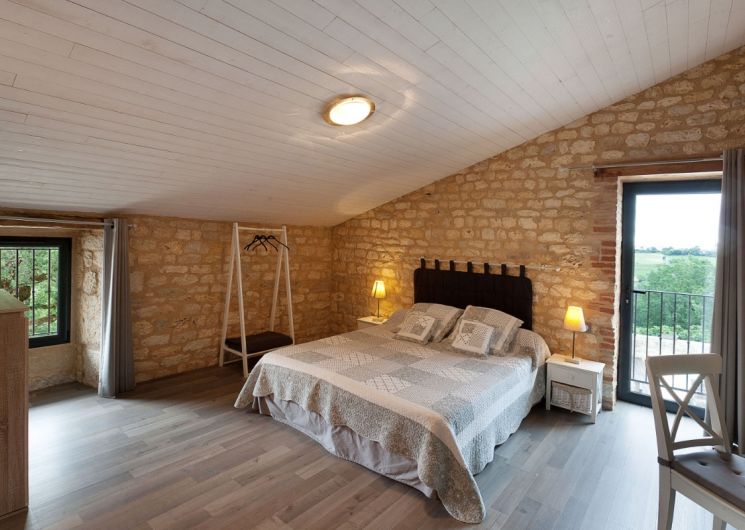 Group lodging at Domaine de Larroque, located in the heart of the Gaillac vineyards. Located on the ORGANIC wine estate of Larroque, between Albi, Cordes sur Ciel and Gaillac, this 14-bed gîte has been renovated with respect for the authenticity of this building of character. Offering great services, you will find quality equipment and comfort. The large terrace offers a clear, rural and peaceful panorama where you can spend pleasant moments of relaxation. (Equipment: pergola, outdoor lounge and plancha, ping-pong table on request) The swimming pool will allow you to share idleness and playful moments with family or friends. (Dimension: 5m X 9m and 1.10 to 1.60 deep, secure, can be shared with the owner). Inside, the large living room offers a kitchen (current equipment: combined fridge-freezer, microwave and oven, induction hob, dishwasher and washing machine), a dining room (wood stove) and a lounge area with TV. The accommodation is equipped with WIFI. Each of the 4 bedrooms has its own bathroom and WC.On the ground floor, the Mandarine room can accommodate people with reduced mobility. (140 cm bed).Upstairs you will find:The Prune family room can accommodate a couple (160 cm bed) and two children (90 cm bunk beds);The Dormitory offers 2 large bunk beds 140 cm for the lower beds and 90 cm for the upper beds;The Marine room, for its part, has a 160 cm bed. Regarding activities: on the Estate, we will be happy to offer you tasting of wines from Organic Farming as well as the sale of farm products.You will find a multitude of things to see, do and discover in this little corner of Gaillacois …