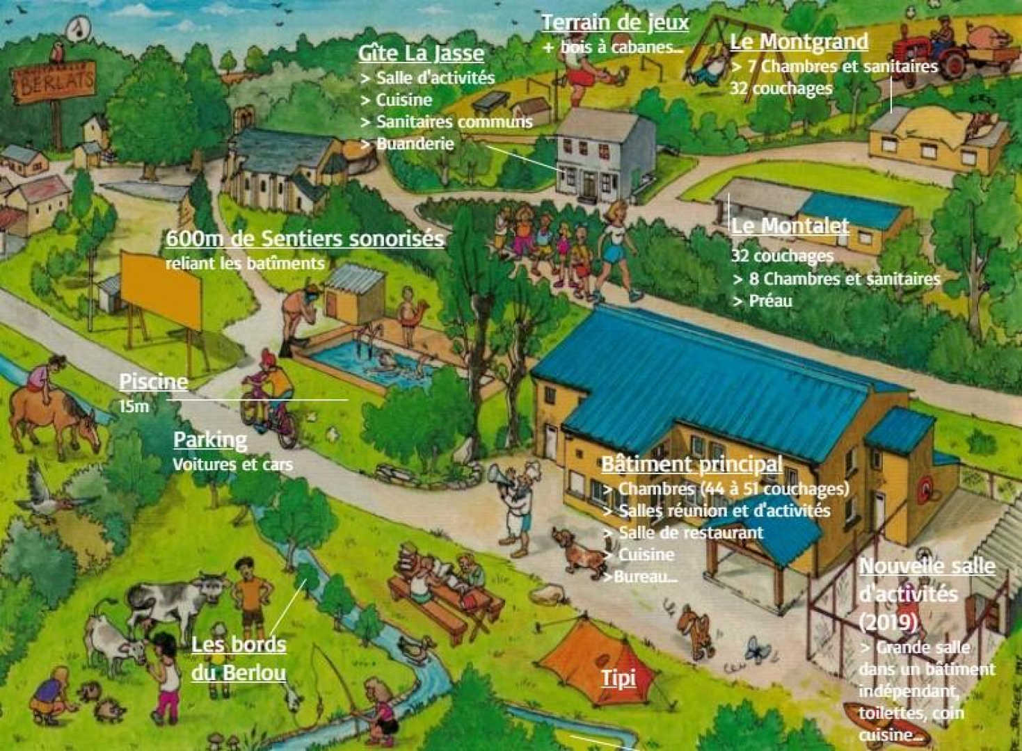 Holiday centre and group accommodation for individuals, Berlats Accueil Découverte can reach a maximum capacity of 116 beds.