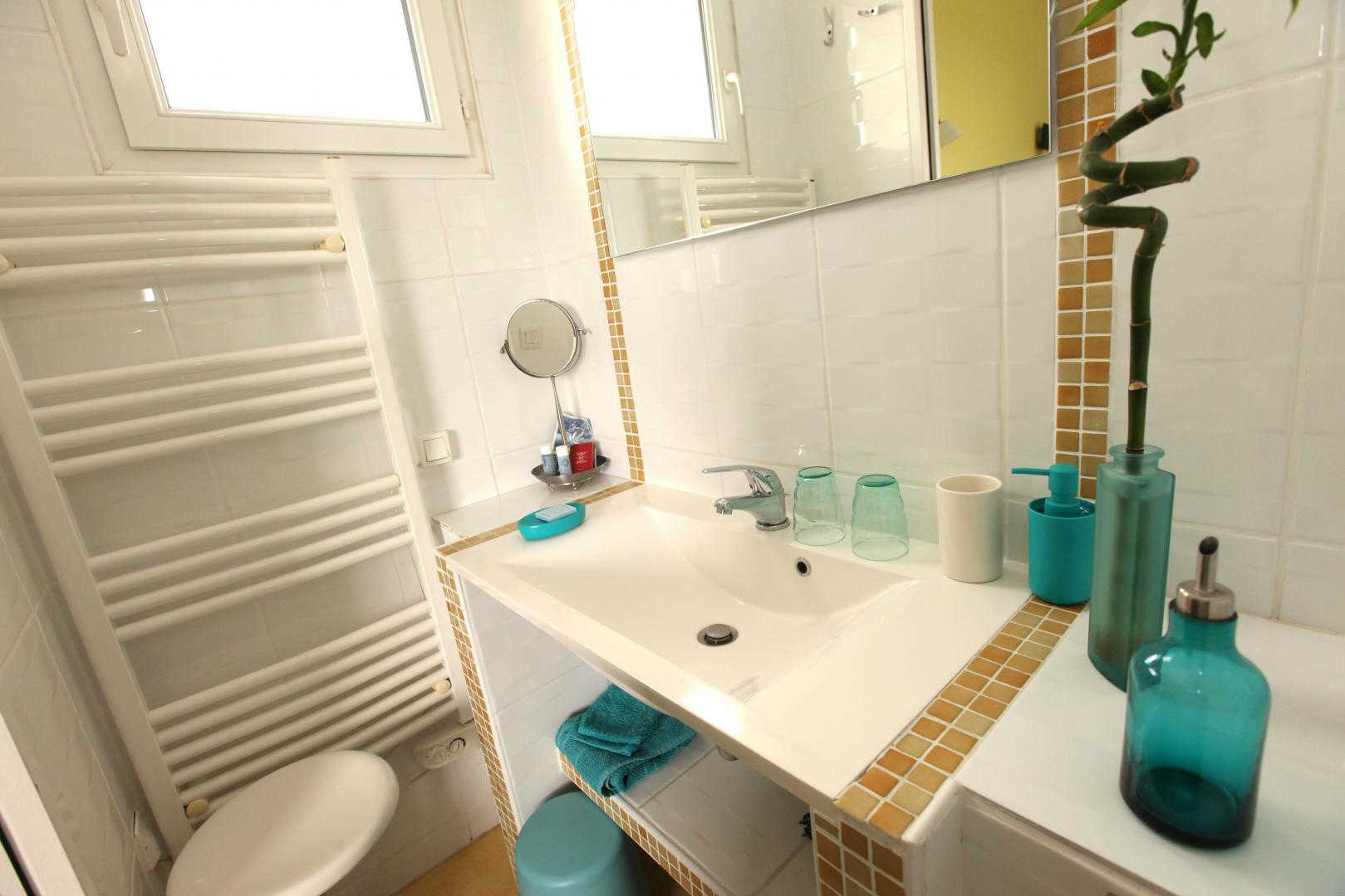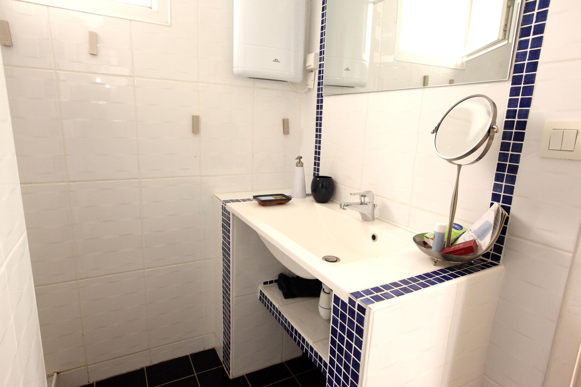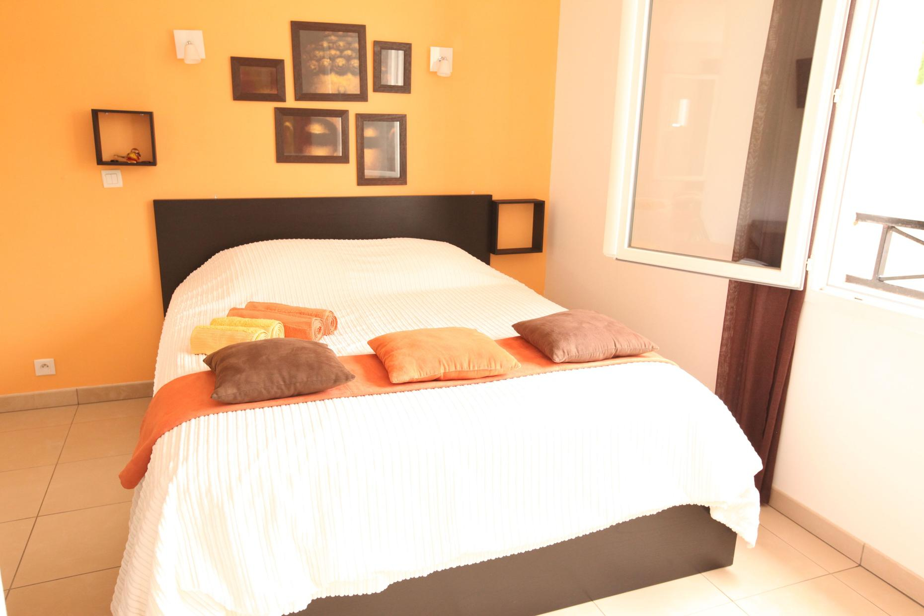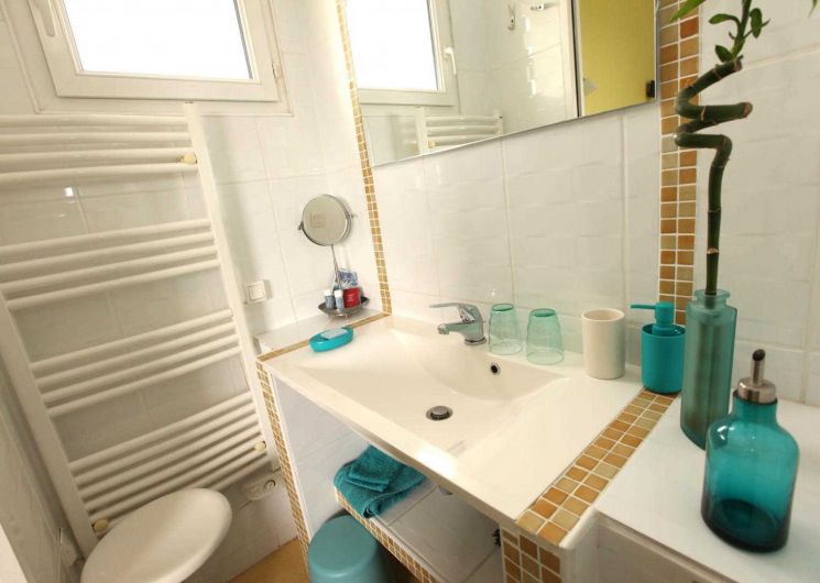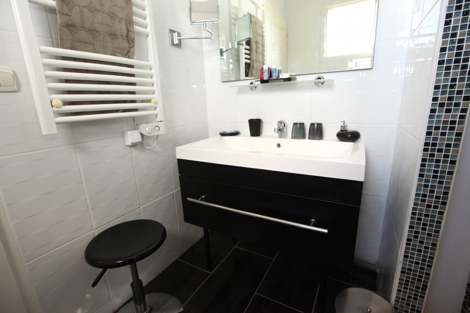 – on the ground floor overlooking the terrace: Zen room, classified 3 épis, with a 160×200 bed and private bathroom