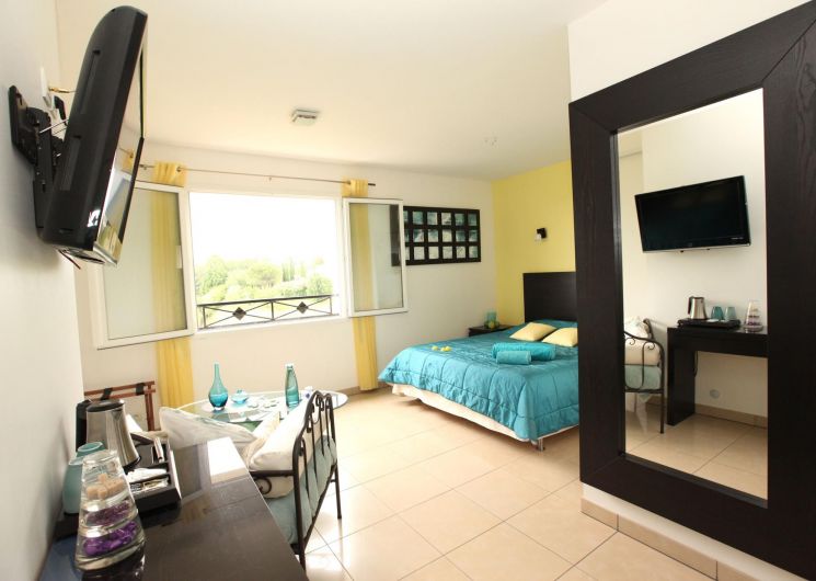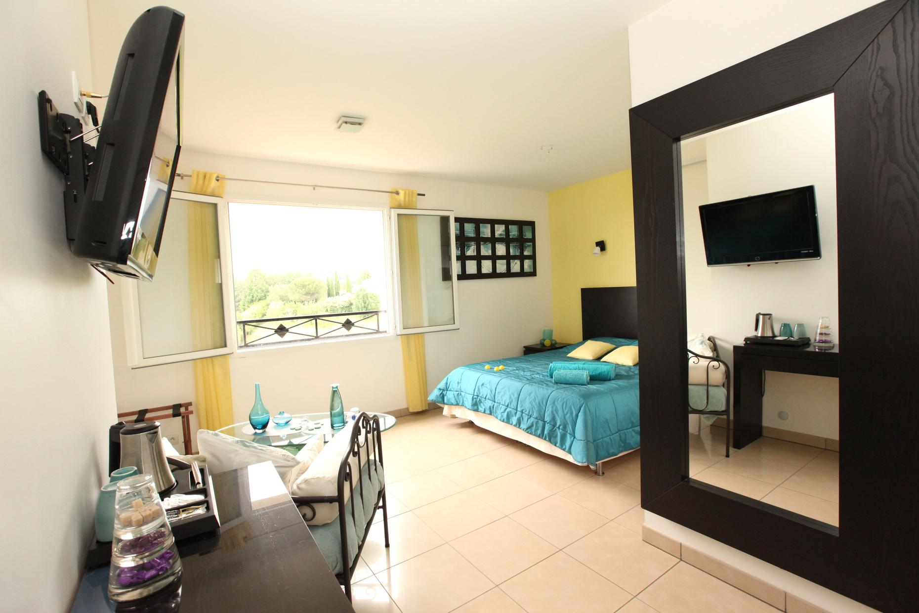 – the bright Rêv’orange, Levantine, Paradis Blanc and Nocte guest rooms are upstairs. They all have en suite facilities and 160×200 beds (180×200 for the Nocte room), with panoramic views. Each room has a sofa or armchair and a flat-screen TV.