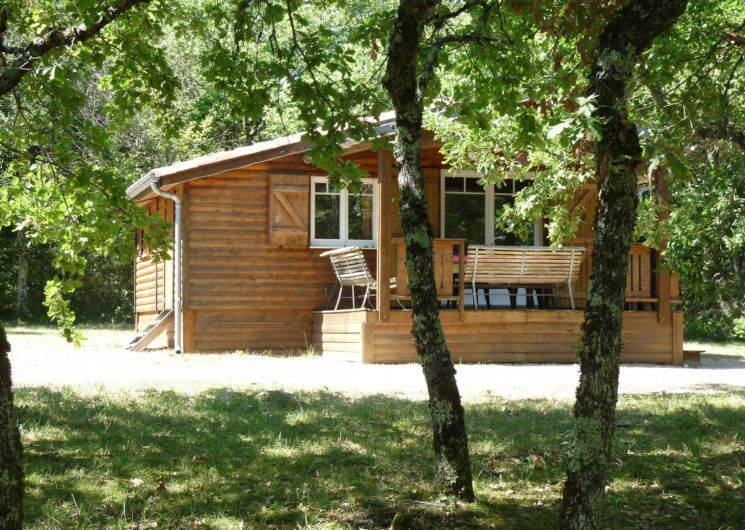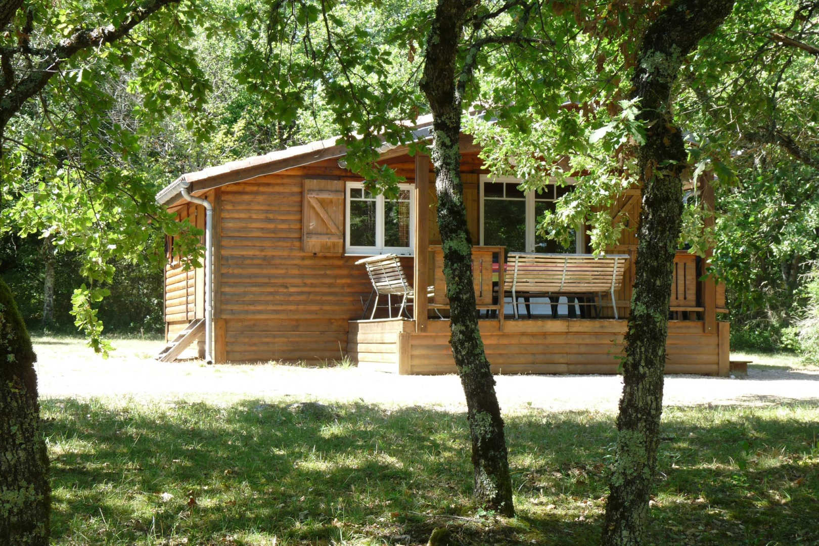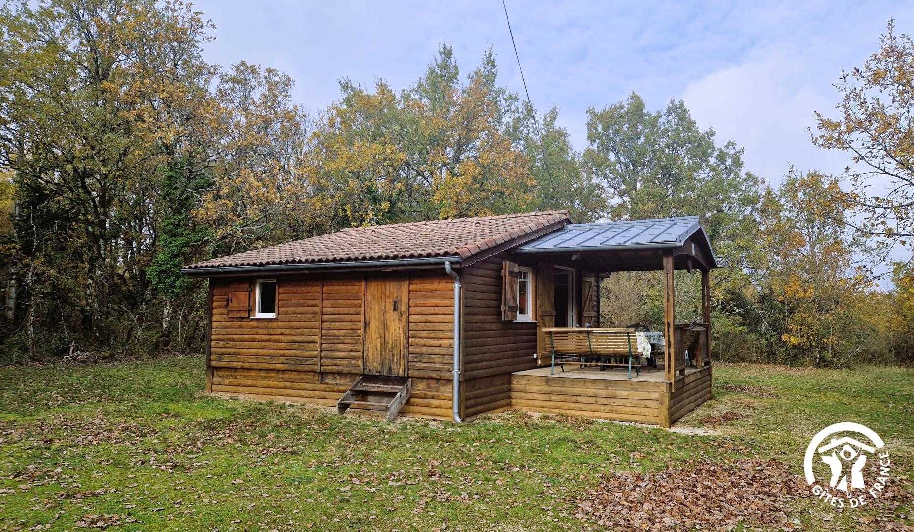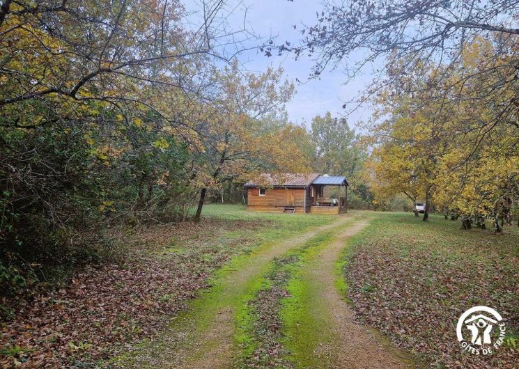 Un mignon chalet tout en bois sur le Causse dominant Penne, au cœur d’un bois de chênes, de buis et de genévriers
