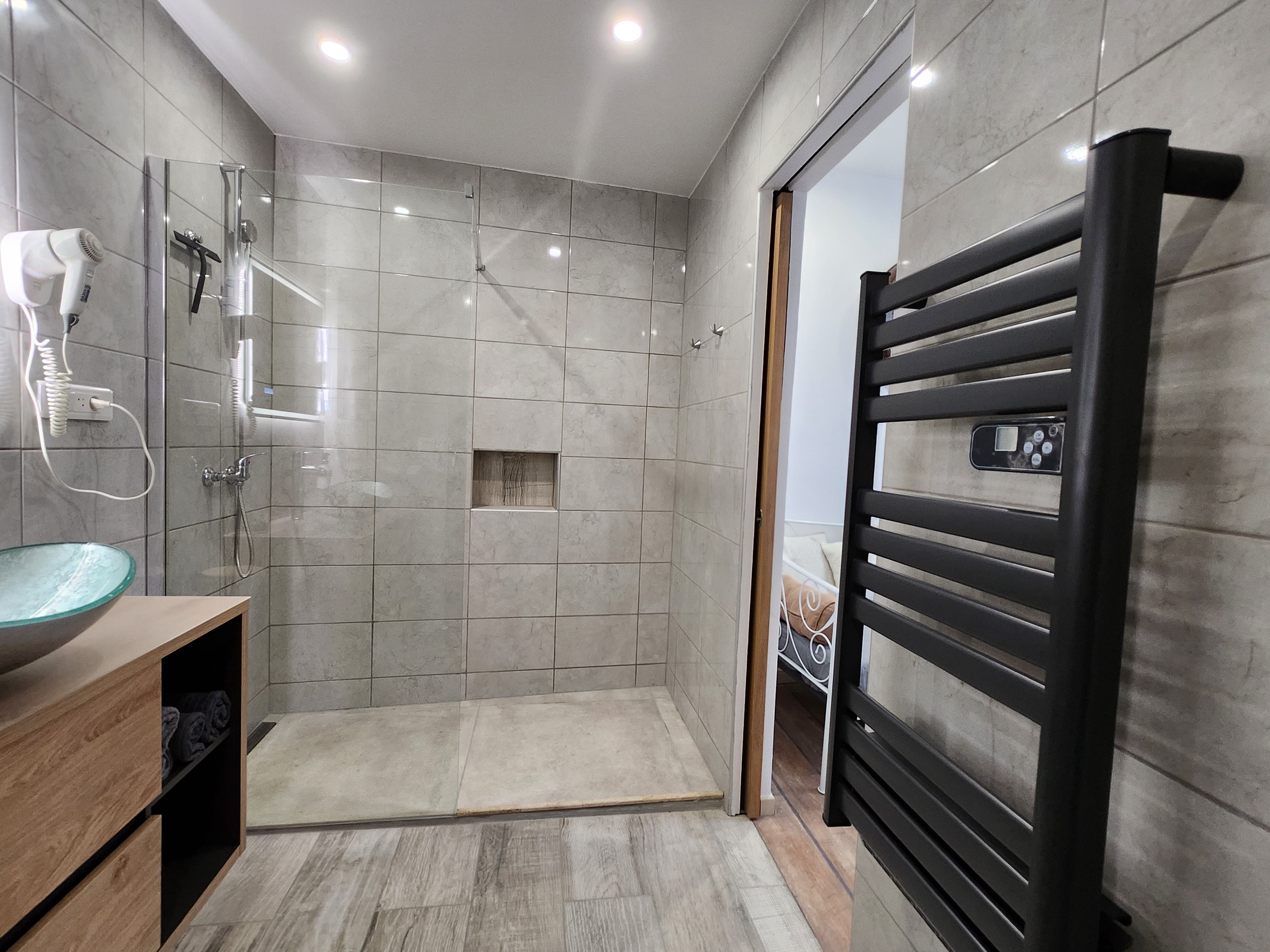 Immerse yourself in a soft, refined atmosphere with a stay in the recently renovated Lavande Room. It features a double bed (180 cm), a private bathroom with toilet, air conditioning, free Wi-Fi and a courtesy tray (tea, coffee). Beyond this comfortable room, you’ll enjoy a shared outdoor kitchen, heated swimming pool, pétanque court, landscaped garden and children’s playground. A true cocoon of serenity to recharge your batteries and savor every moment in the heart of Domaine à l’Aise.