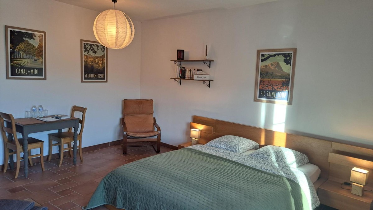 Idéalement située au cœur de l’Hérault, cette maison d’hôtes vous accueille à proximité de sites touristiques incontournables : le magnifique Lac du Salagou, les spectaculaires Cirques de Mourèze et de Navacelles, parfaits pour des randonnées mémorables. Vous serez également charmés par les villages typiques de Saint-Guilhem-le-Désert et son abbaye renommée, ainsi que Saint-Jean-de-Fos, célèbre pour son artisanat de poterie. Envie d’une escapade urbaine ou balnéaire ? Montpellier et la côte Méditerranéenne sont à quelques kilomètres. Votre séjour chez Yves et Lydia : Réservez de 1 à 3 chambres rien que pour vous (les hôtes dédient leur accueil à un seule famille / groupe d’amis à la fois, pouvant aller jusqu’à 6 personnes, pour plus de confort et d’intimité, ). Une piscine (à partager avec les propriétaires) et une cuisine d’été entièrement équipée (gazinière, réfrigérateur, micro-ondes, vaisselle) sont à votre disposition pour profiter pleinement de votre séjour. Les petits-déjeuners, préparés avec des produits frais et locaux, sont servis au bord de la piscine ou dans la salle à manger en cas de mauvais temps. Une table d’hôtes est également proposée une fois par semaine. Un parking privé est accessible sur la propriété. Nous y trouvons une chambre principale de 22m2 avec lit double (160*200), TV, salle de bain privée, qui donne sur une terrasse avec vue sur la piscine et les oliviers. Cette chambre peut être louée seule ou avec une ou 2 autres chambres pour une même réservation : Chambre 2 : un lit double (140*200). Chambre 3: deux lits simples (90*190. Une salle de bain commune ainsi que des toilettes séparées sont réservées à ces deux chambres. Cette maison d’hôtes est le lieu parfait pour créer des souvenirs inoubliables en toute intimité. – Grande chambre de 22 m2 avec un lit double (160*200), une armoire, une petite table et chaise, une télévision. Cette chambre dispose de sa salle d’eau privative avec toilettes. Une porte fenêtre donne sur une petite terrasse avec accès et vue sur la piscine. Wifi