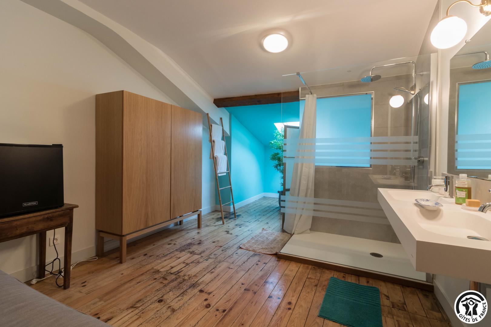 Château Sud, 10 posti letto, 4 épis, con la sua storia e i suoi comfort moderni, accoglie a Cessalès famiglie numerose o gruppi di amici. Terrazza e giardino con la possibilità di passeggiare per la tenuta per godere dei panorami e degli alberi, in comune con i proprietari che occupano un’altra parte dello château. Sarete vicini a molte attrazioni turistiche: 7 km da Villefranche-de-Lauragais (negozi, ristoranti, cinema, mercato, Canal des 2 Mers: escursioni, ciclismo, noleggio di chiatte, crociere), 10 km dal lago balneabile dell’Orme Blanc (giochi d’acqua) e 25 km da Revel-Lac-Saint-Ferréol (le più belle deviazioni di Francia, città delle Arti e dei Mestieri, lago balneabile e giochi d’acqua, Montagne Noire). Nel cuore del Lauragais (terra del pastello), sarete a meno di un’ora di auto da Tolosa, Carcassonne, Foix e Albi. Piano terra: ampio ingresso che conduce ai locali giorno da un lato (cucina, sala da pranzo e soggiorno aperti l’uno sull’altro), e dall’altro una camera da letto Rajini (1 letto matrimoniale da 180 cm con bagno doccia/WC) e un WC separato. Primo piano: Chambre de l’Ambassadeur (1 letto matrimoniale da 160 cm e bagno privato + doccia + WC), Chambre du Voyageur (1 letto matrimoniale da 160 cm e bagno privato con doccia/WC), lavanderia. Al secondo piano sotto le travi: salottino e dormitorio (4 letti singoli da 90 cm), bagno con doccia/WC. Riscaldamento centrale a gasolio. Lavatrice e asciugatrice. Accesso internet Wifi. Traduction automatique par DeepL via DATAtourisme