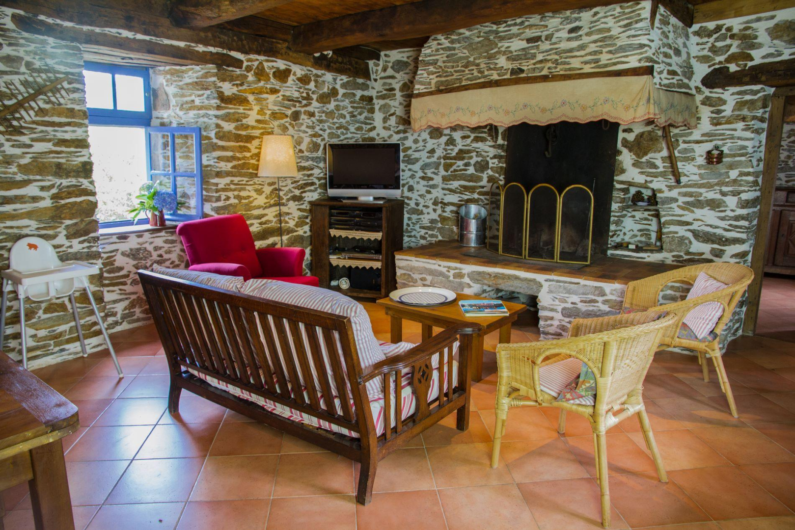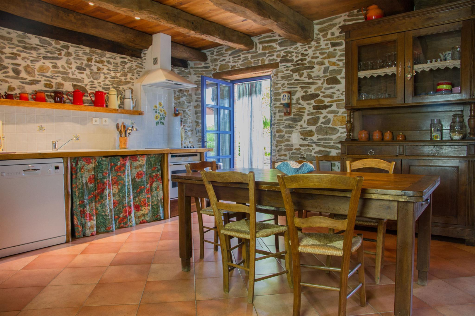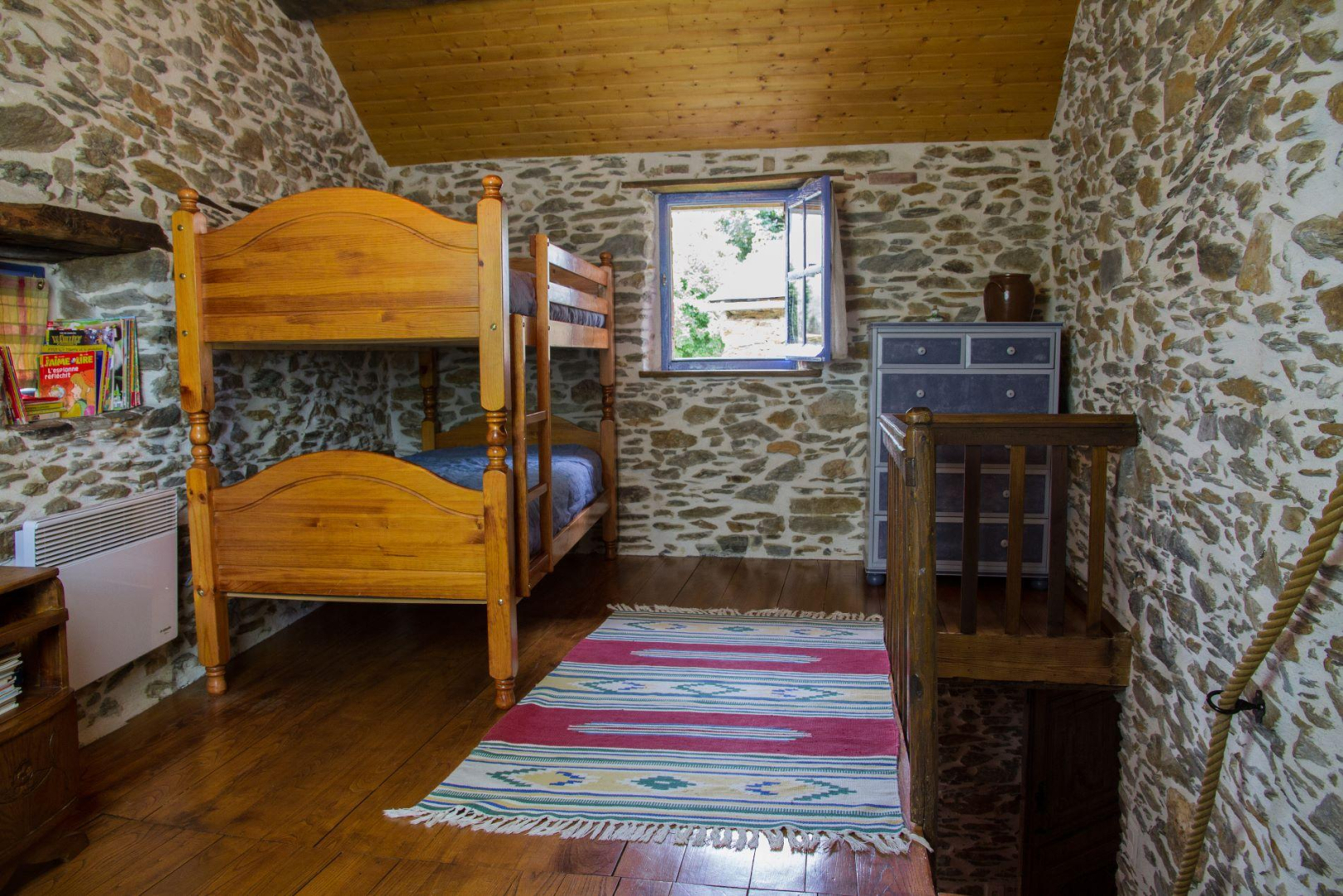 Gîte Chez Ernestine, next to the other gîte Chez Laurencie, with uncluttered view. Gîte on half-landing, access thru a few steps(exterior stairs). Garden, terraces, garden table & chairs, BBQ. Large living-rm-cum open, fully fitted kitchen, fireplace. 1 bdrm for two ( bd 4ft6 x 6ft2), and one bdrm for 4 persons (bd 4ft6 x 6ft2 and 2 bds 3ft x 6ft2), composed of two rooms : bdrm + mezzanine accessible thru steep stairs. Electric heating, air-condition. Washing mach, tumble dyer, dishwasher, fridge + chest freezer, vitro-ceramic plate, electric oven, micro-w. TV-dvd, hi-fi ;Baby equipment . Ping-pong, swing, games’ & fitness room shared with the other gîte. Possibility of bd sheets renting and cleaning service. – La Roucarié is a charming little hamlet perched up a hill at 600 m high, in the heart of the Monts d’Alban, a very hilly medium mountain area up over the high valley of the Tarn. At merely 30 minutes from Albi towards Millau, landscapes change totally : here, you find yourself immersed into a serene and calm environment, ideal for unwinding, far from everything. The gîtes of La Roucarié invite you to discoveries, walks or hiking, on foot, on mountain bike, or on horseback. Jacqueline and Bernard have very patiently and passionately set up, with their own hands, these both houses. There,the atmosphere and the decoration are warm-heated, combining wood,stones, and the patina of time. Dreamers will appreciate the various terraces, from where their look will linger onto the surrounding mountains, while the most sportive will enjoy the game’s rm and fitness & spa appliances. For the children : outdoors games’ area, swing.
