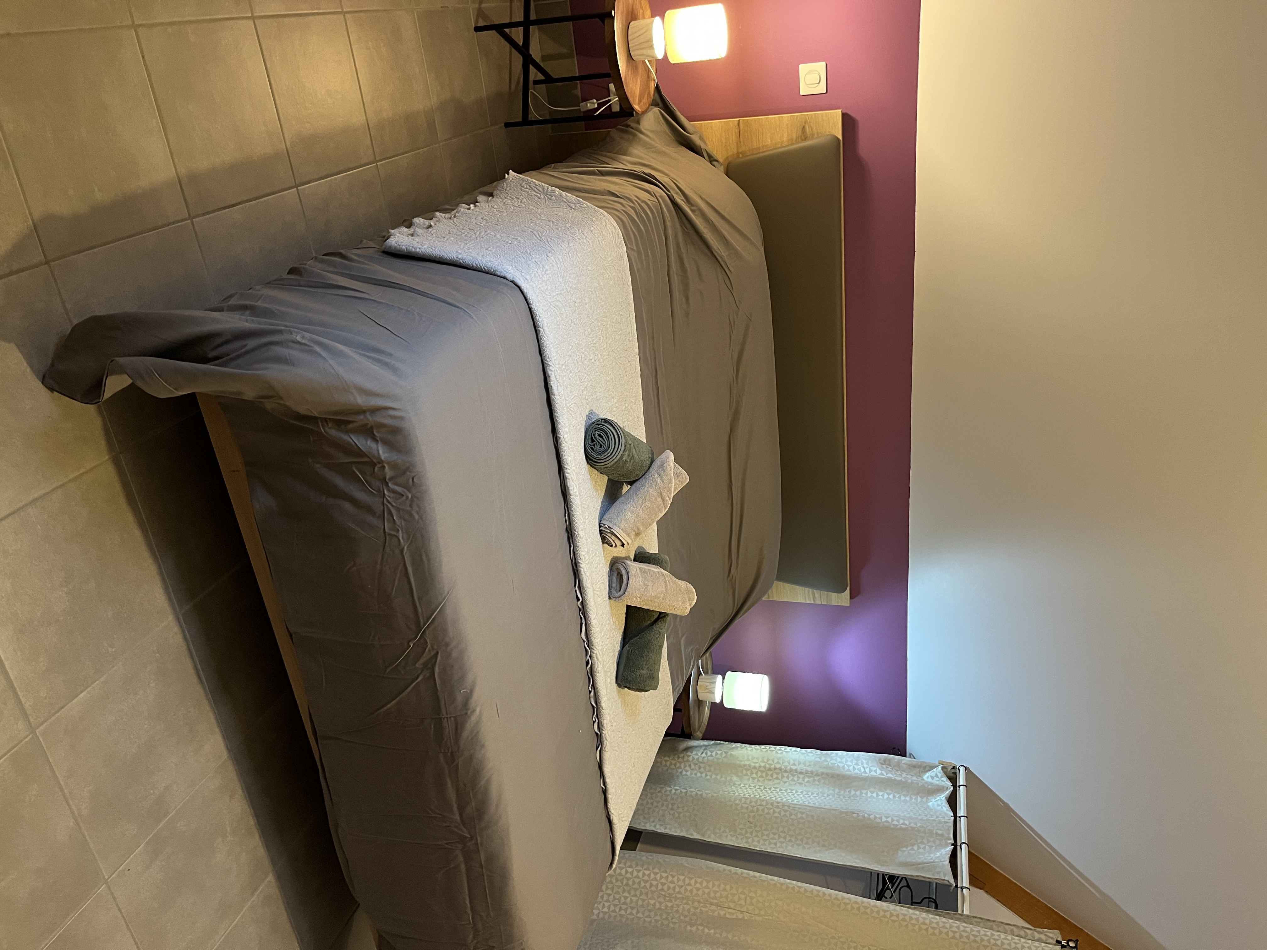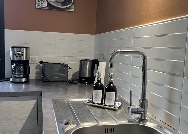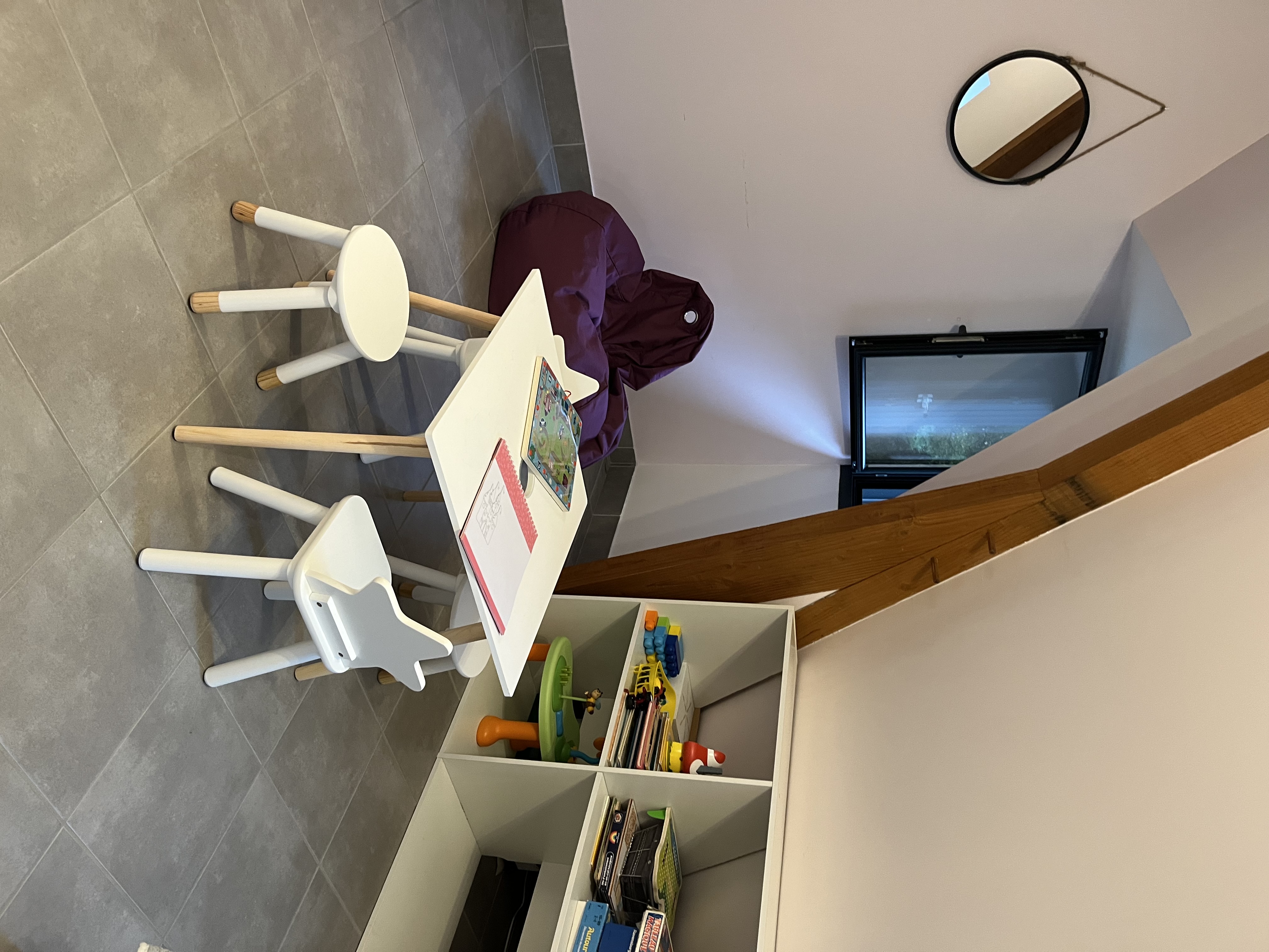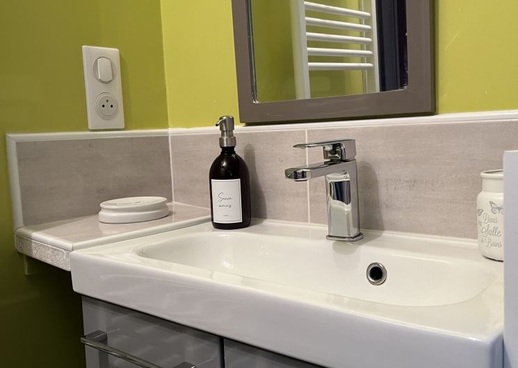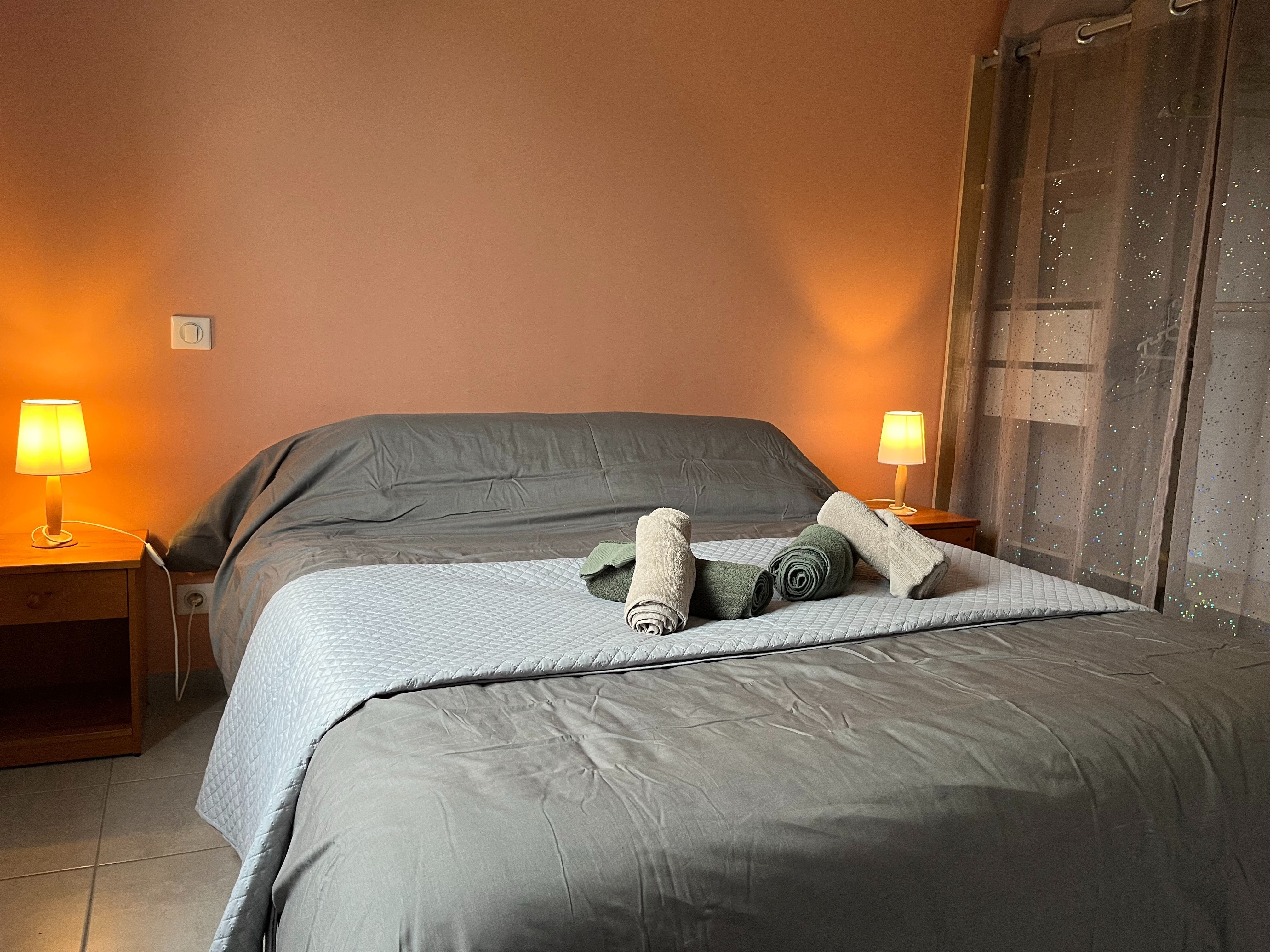 Entree de plein-pied avec une cuisine ouverte sur l’espace repas et le salon , deux chambres sont à ce niveau avec 1 lit 160 et 2 lits 80 pouvant être reliè pour faire 1 lit 160 , un wc et une salle d’eau . Un étage il ya deux chambres, une avec 3 lit 90 et une avec 1 lit 160,un espace tv, jeux enfants et deux banquettes lit en 90 y sont installeés. Une salle de bain et un wc . Au sous sol ,une chambre avec 1 lit 90 et 1 lit 140 , une salle d’eau et un wc, une buanderie avec lave linge et sèche linge .