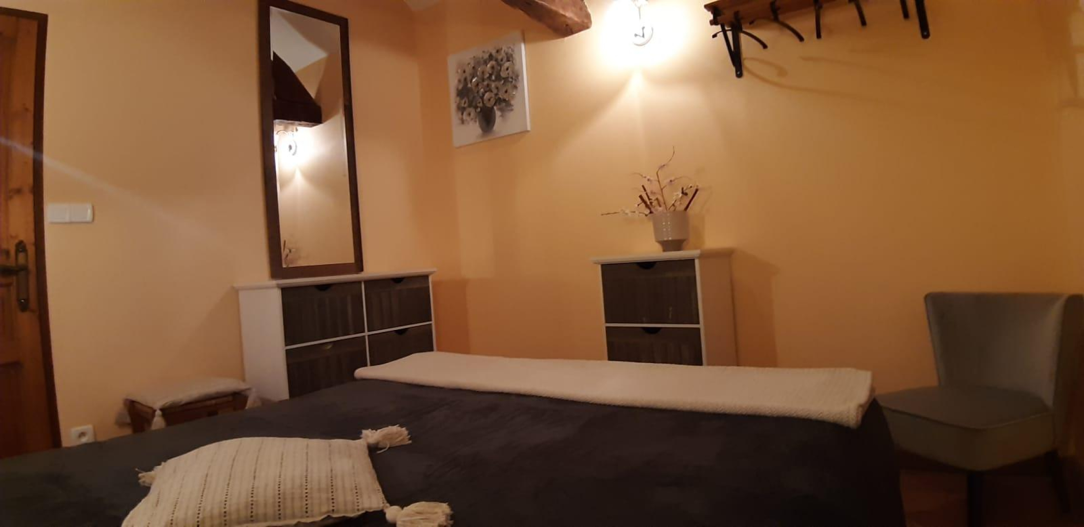 – On the ground floor: a large living room with sitting area in front of the fireplace, an open kitchen (dishwasher, mini-oven, kettle…), a separate toilet, a small laundry room with washing machine.