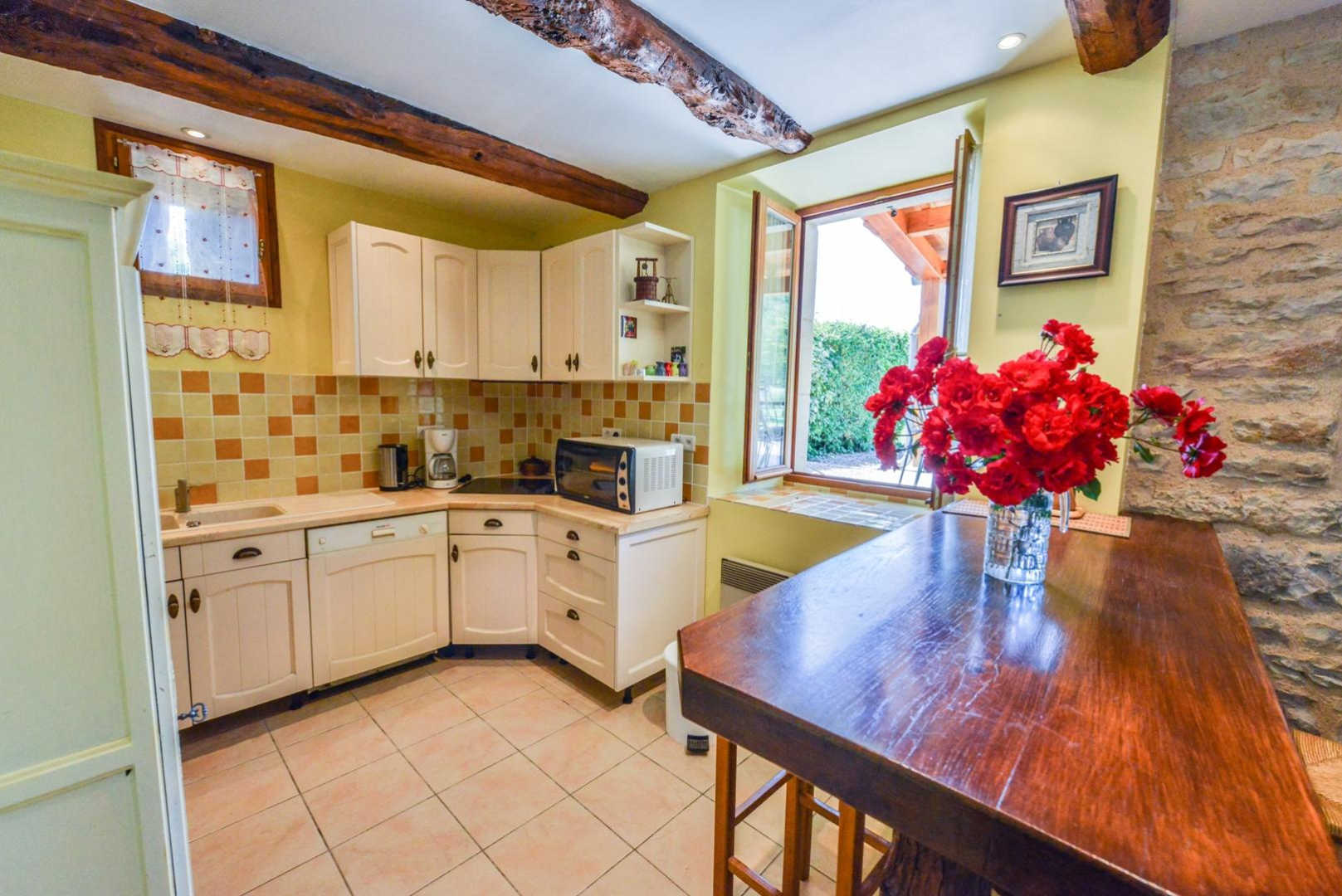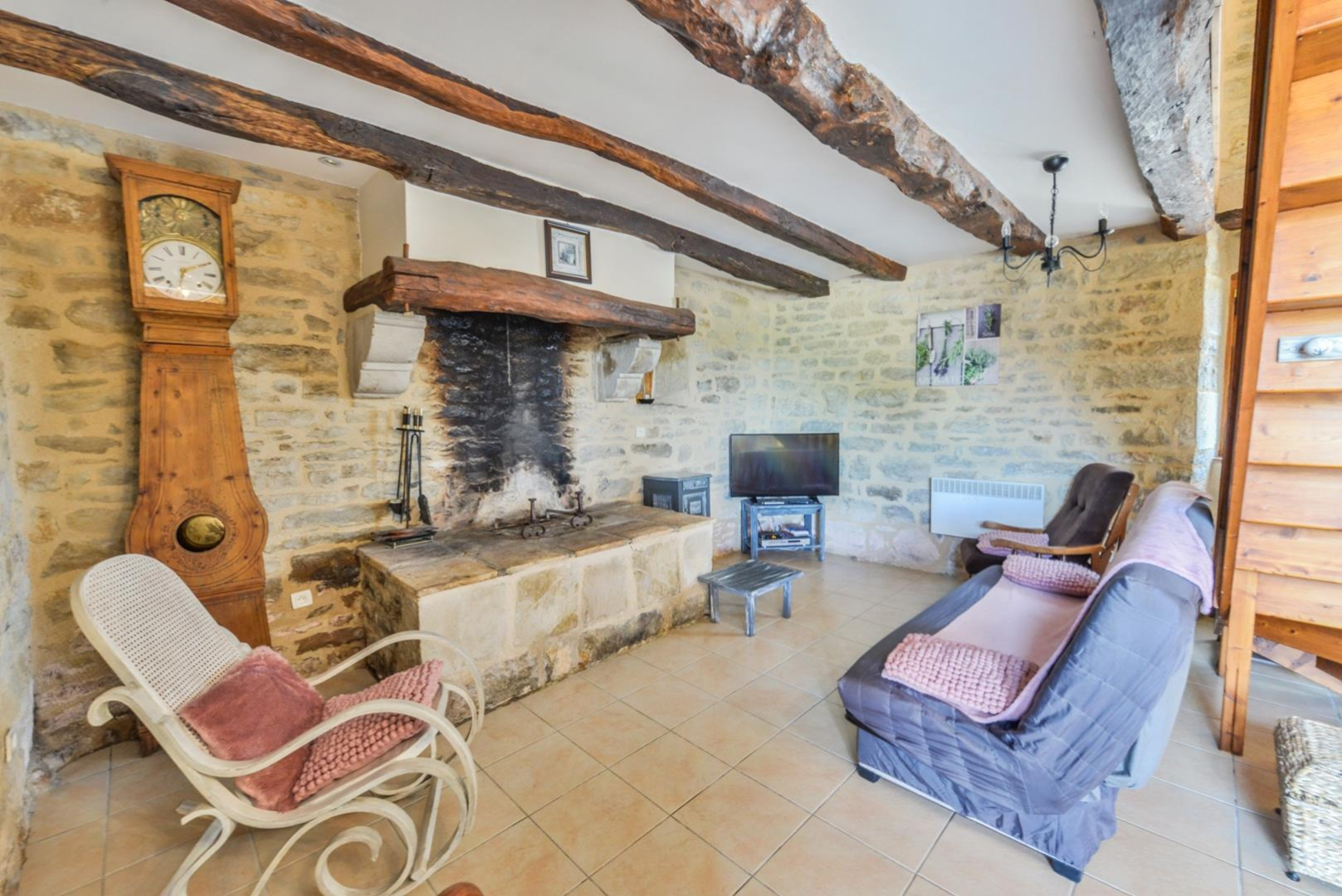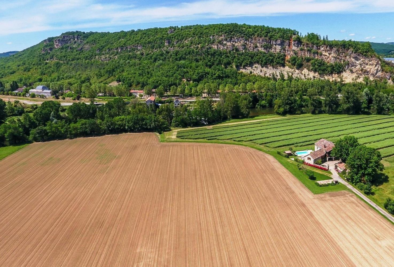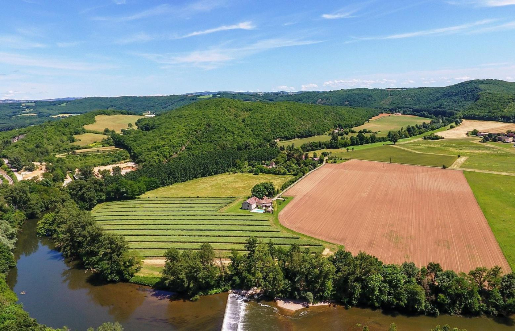 On the banks of the Aveyron, the house is facing the limestone cliffs.