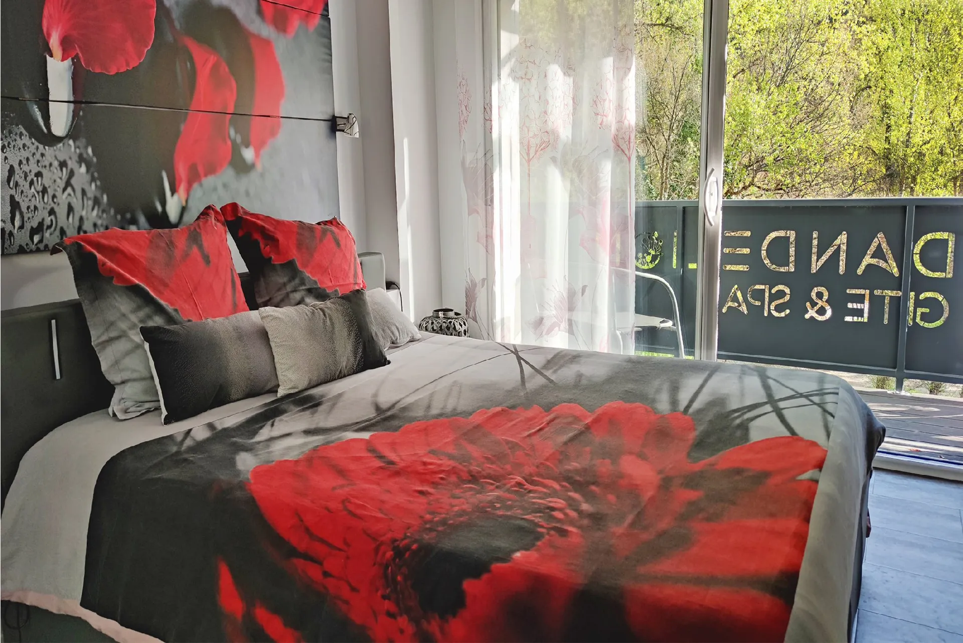 – Chambre « Coquelicot » disposant d’un lit massant avec éclairage LED de 160x200cm