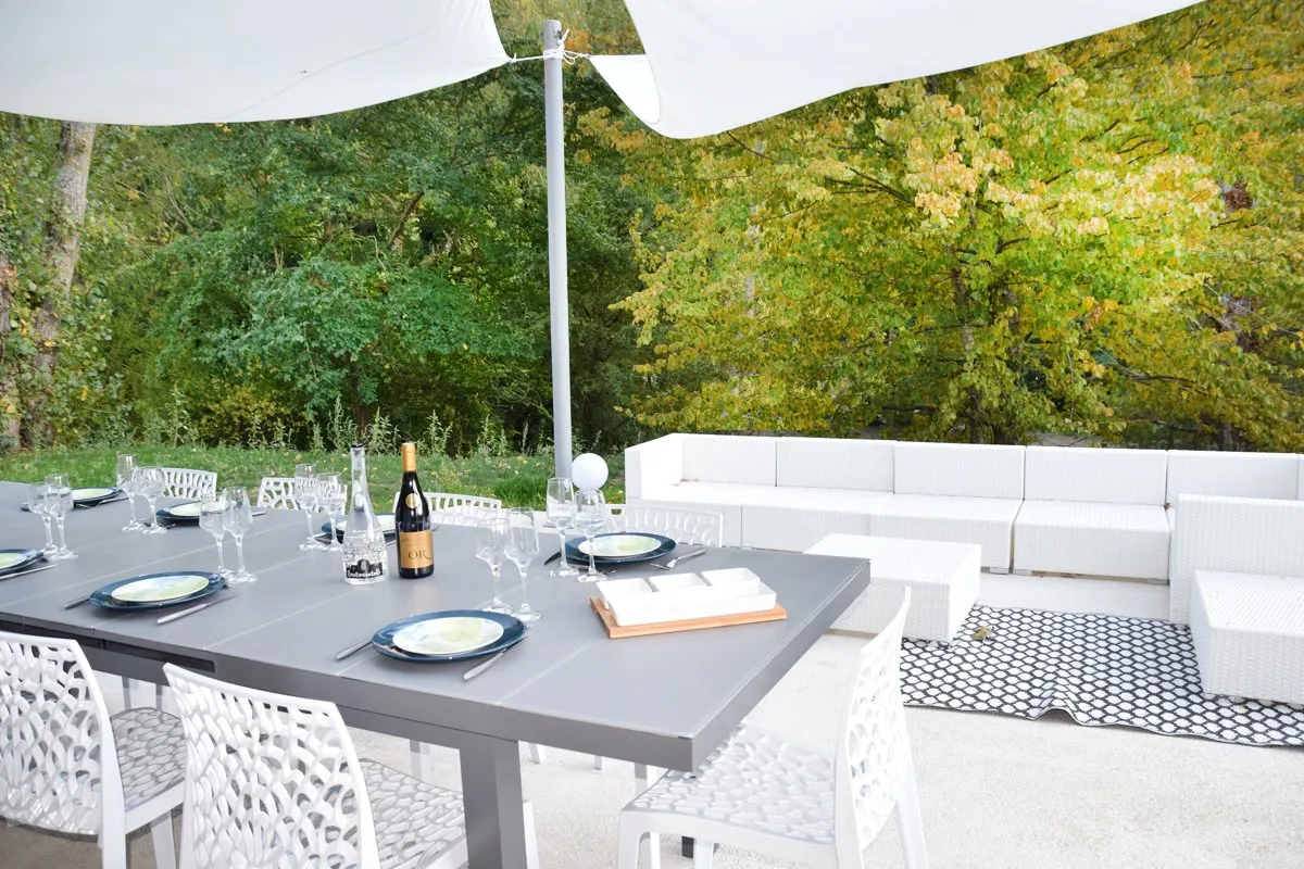 Détente LIBERTÉ et Partage pour des VACANCES NATURE en AVEYRON dans cette spacieuse maison de vacances familiale dans les Gorges du Tarn, villa design standing 5 étoiles au bord de la rivière avec piscine jacuzzi sauna spa de nage clim wifi parking