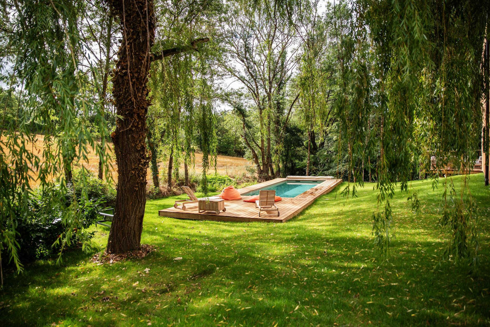 Tra gli alberi, un ambiente verde con arredamento raffinato, piscina privata e bagno nordico! Traduction automatique par DeepL via DATAtourisme