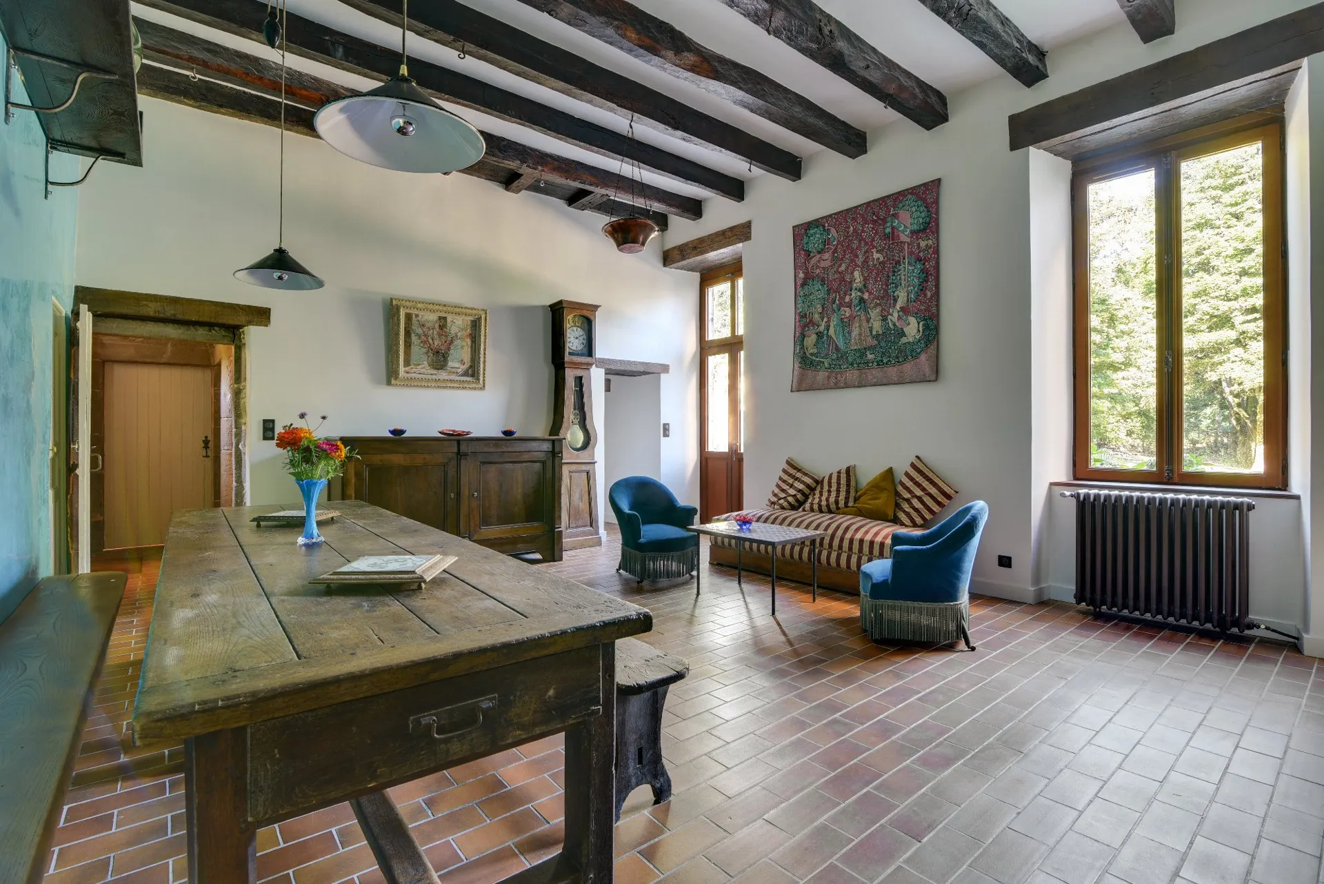 Le domaine s’étend sur 10 hectares autour de la maison : des prés où pâturent chevaux, ânes et brebis, que vous croiserez peut-être au détour du ruisseau ou de l’étang. Il y a aussi de grands bois où trônent de majestueux hêtres et châtaigniers nous rappelant ainsi que ce lieu est chargé d’histoire. Et enfin, un centre équestre. Que vous soyez novice ou confirmé, pour un cours ou une balade, petits et grands pourront profiter du séjour pour monter à cheval dans ce cadre magique.