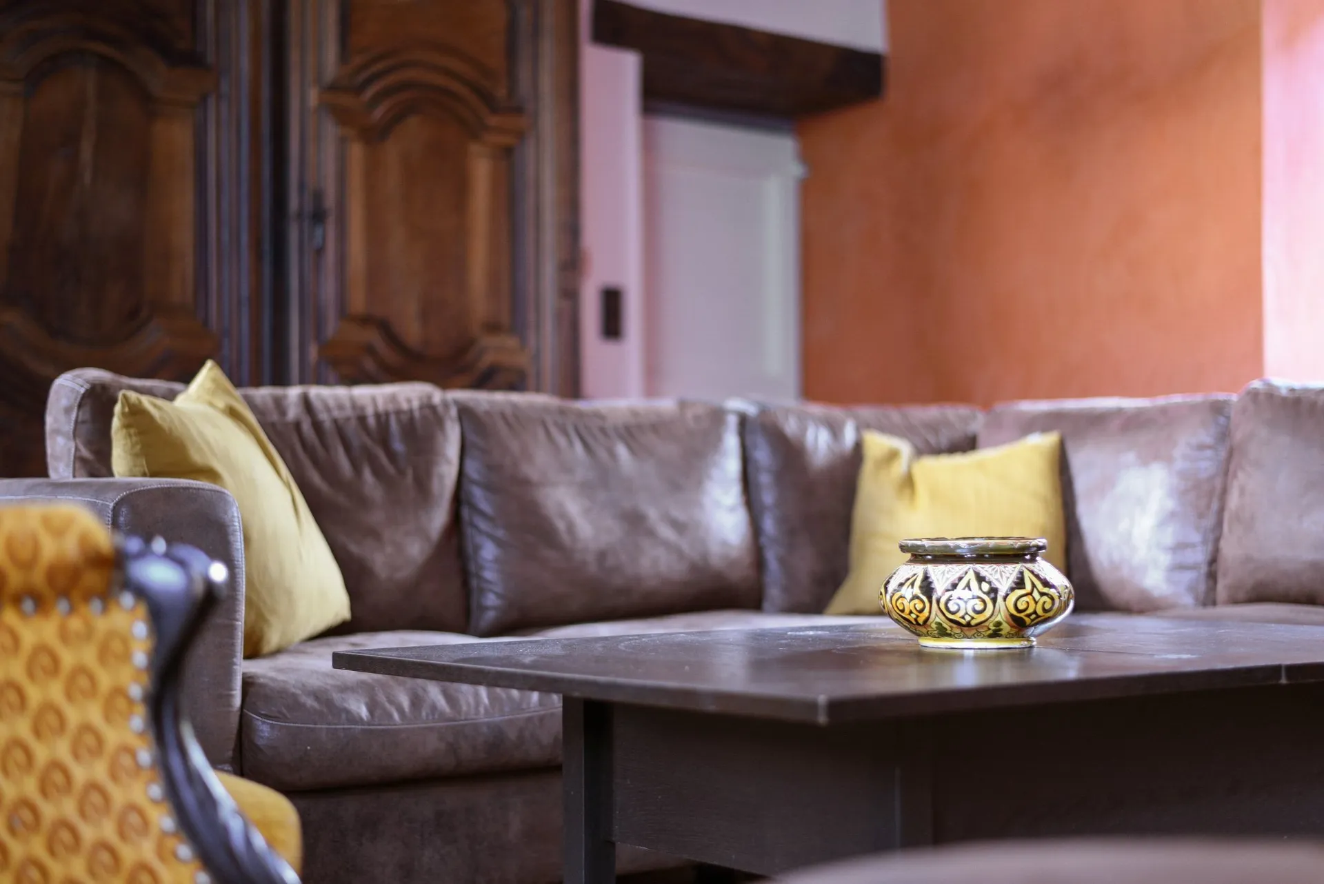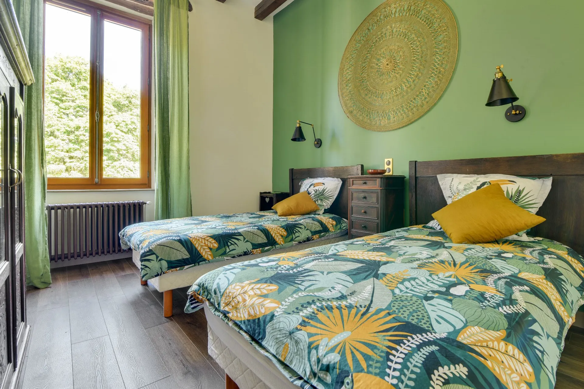 Sur deux étages de 100 m² chacun, l’aile du « Château » a été entièrement rénovée en 2021. Spacieux, confortable et décoré avec soin, c’est un gîte parfait pour se retrouver en famille ou entre ami.e.s dans une ambiance chaleureuse. Vous pourrez profiter du parc calme et fleuri : lecture dans une chaise longue à l’ombre de grands érables, et pourquoi pas, une partie de boule ou de mölkky sur le terrain de pétanque, les moins sportifs pourront s’installer tranquillement dans le salon de jardin pour un moment convivial autour d’un verre. Par ailleurs, une grande salle abrite une table de ping-pong et un babyfoot. Non loin, un ancien fournil a été réhabilité vous permettant de faire des grillades.
