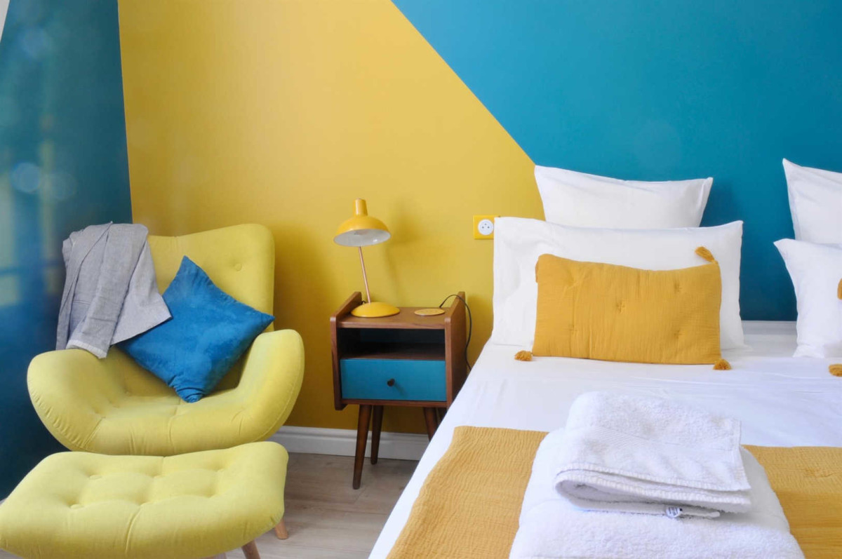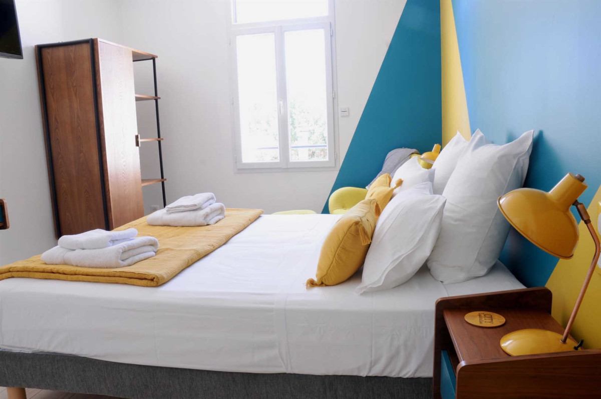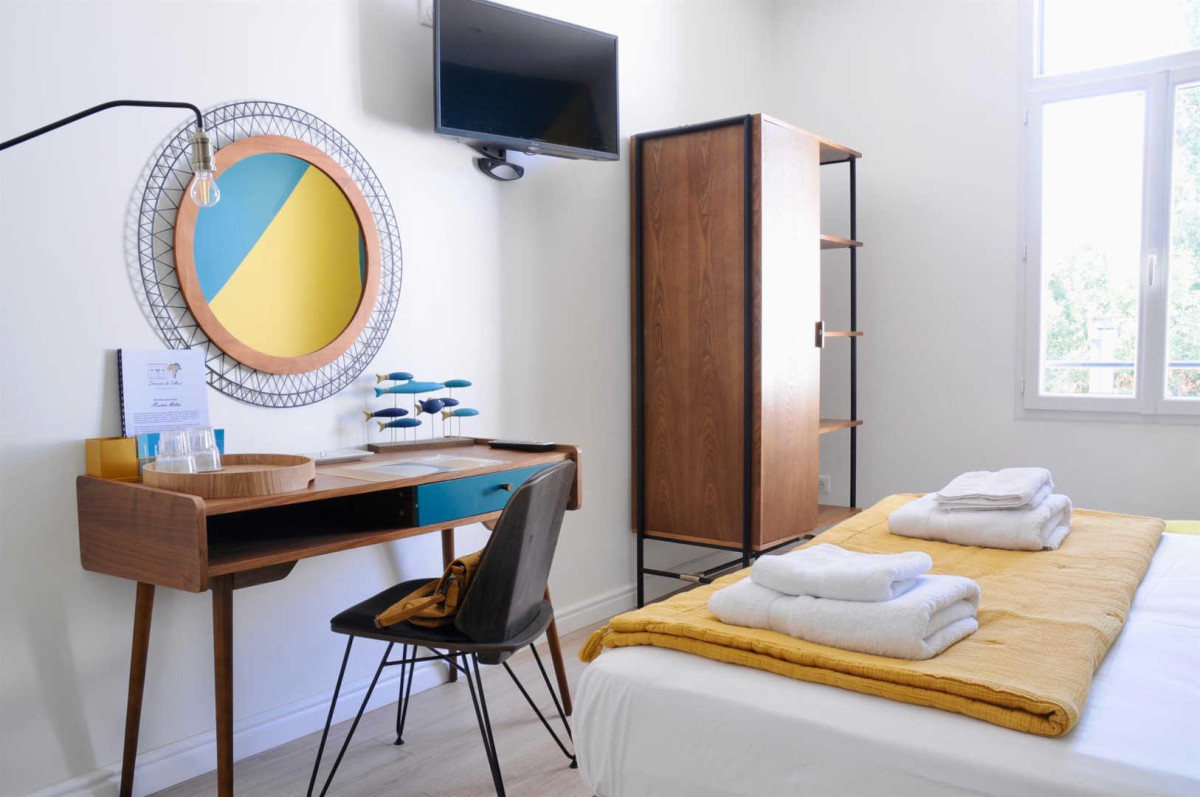 Enjoy an unforgettable stay at our estate in Frontignan, located between land and sea, with ideal access to the Hérault, its beaches, towns such as Sète and its terroir, as evidenced by the surrounding vineyards. Inside the house, you’ll find a very pleasant living room with tables and armchairs, where you’ll find a coffee machine, kettle, microwave, local products and drinks for sale, as well as board games and books for the whole family, provided by your hosts. Outside, you can enjoy the Hérault sunshine in a wooded park of over a hectare, where you can relax or enjoy breakfast on the guest room terrace. The Domaine de Selhac is also very committed to sustainable development, with a real desire to offer products from short circuits and to take an eco-responsible approach. The guest house offers 5 rooms ranging in size from 16m² to 21m², each with en-suite shower room and WC, TV and storage space. The estate also offers secure parking and bike storage. Tourist attractions: Frontignan is a charming town in the south of France, located between Sète (5kms) and Montpellier (25kms), close to Balaruc-les-Bains (7kms), France’s leading spa resort, and the Thau lagoon, famous for its oyster beds. There are several magnificent beaches along the coast, including the Plage des Aresquiers. Here you can enjoy water sports such as swimming, sailing and diving, as well as cultural activities, or discover the many walks between the sea and the lagoons. Frontignan is also famous for its Muscat, a sweet, aromatic wine whose vineyards and cellars you can visit and taste. Hérault, the cultural trump card: Romanesque abbeys, heritage, Grands Sites de France, ar – Located on the first floor of the manor house, the Psychedelic room takes you back in time to the 50s. Its graphic, vitamin-rich decor extends right through to its private shower room. It features a 160×200 cm bed, a closet with shelves and a television. Equipped with a desk, it is ideal for couples with young children (a cot is available) or for professionals on business trips.
