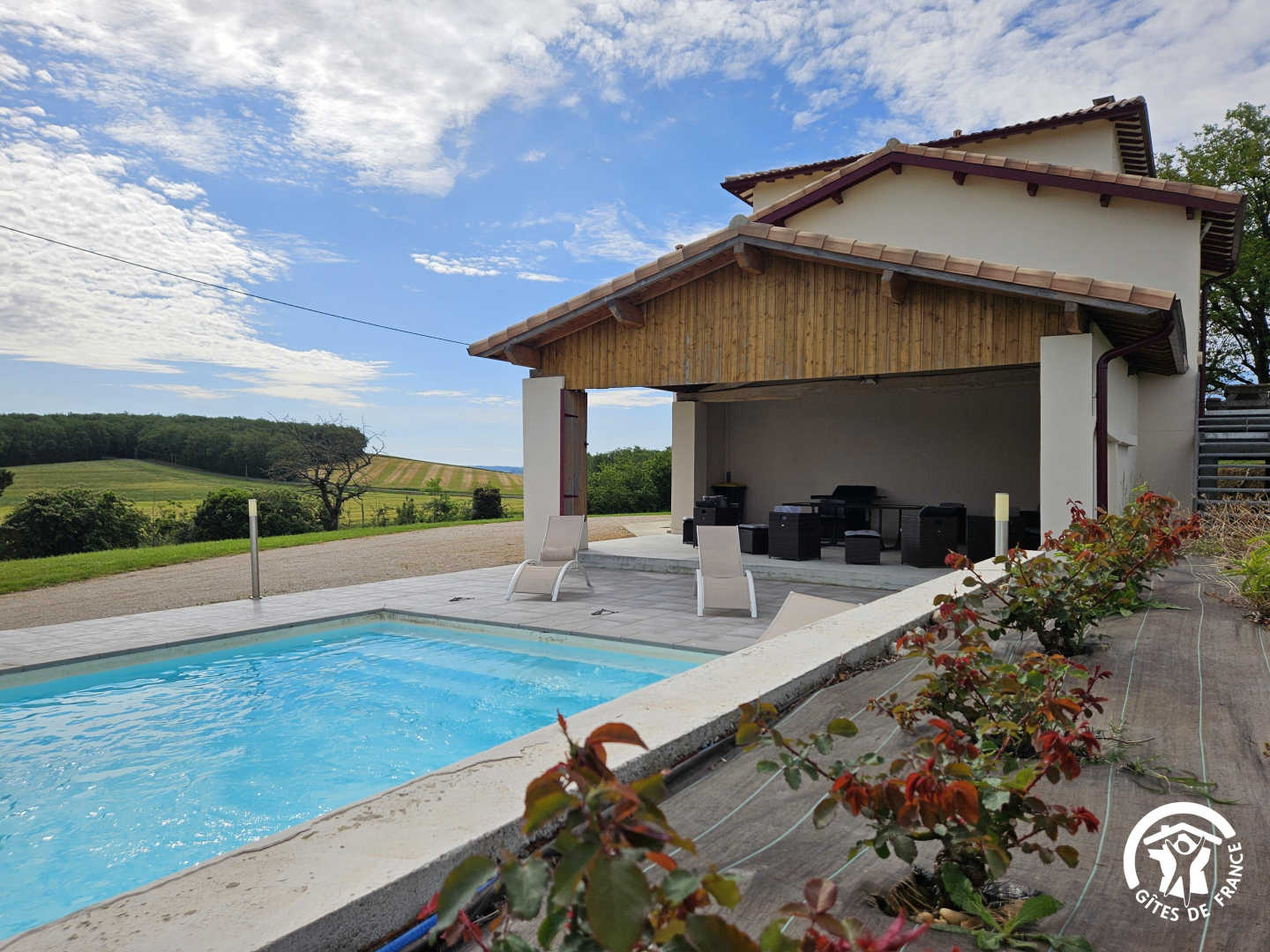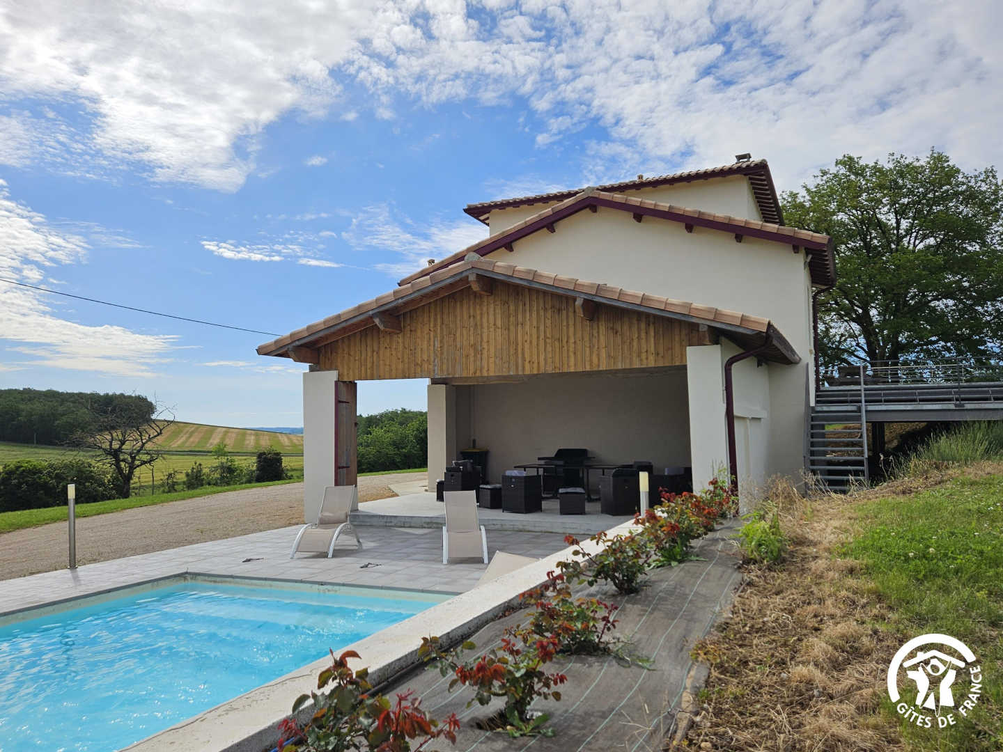 Son extérieur paisible, sans aucun vis-à-vis, sera le cadre soirée de toutes vos soirées autour de la piscine, du barbecue ou encore en admirant la vue imprenable sur toute la région.