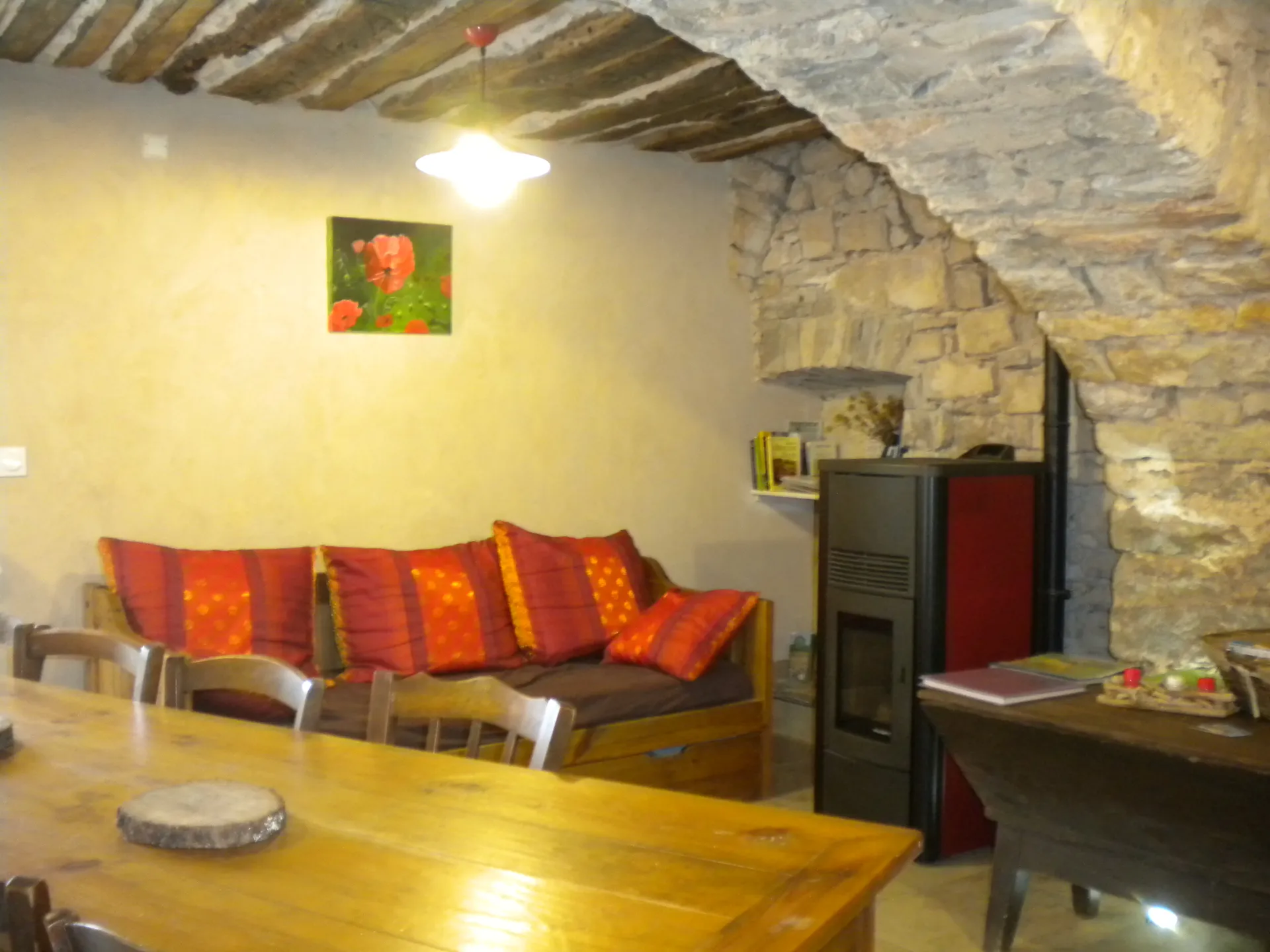 The gîte was fully ecologically renovated. Power is produced by solar vanels, central heating with a stove, fluvial water collection for the toilets.