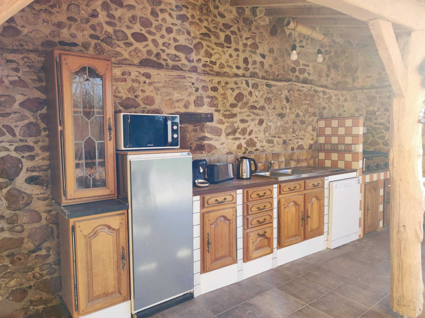 Cuisine d’été toute équipée avec réfrigérateur, micro-ondes, lave-vaisselle, bar, vaisselle pour l’extérieur, tireuse à bière Philips® (bière non fourni) et plancha.