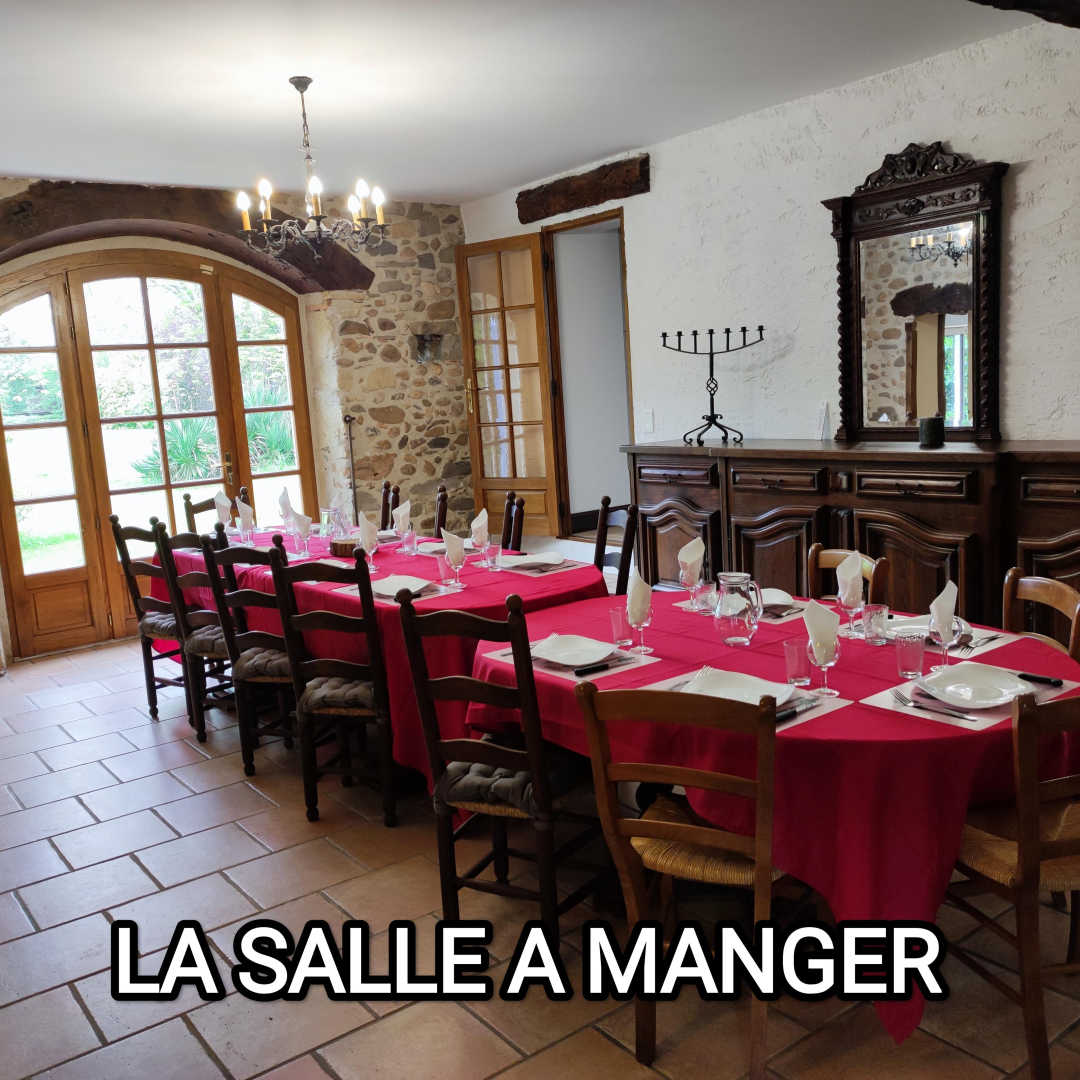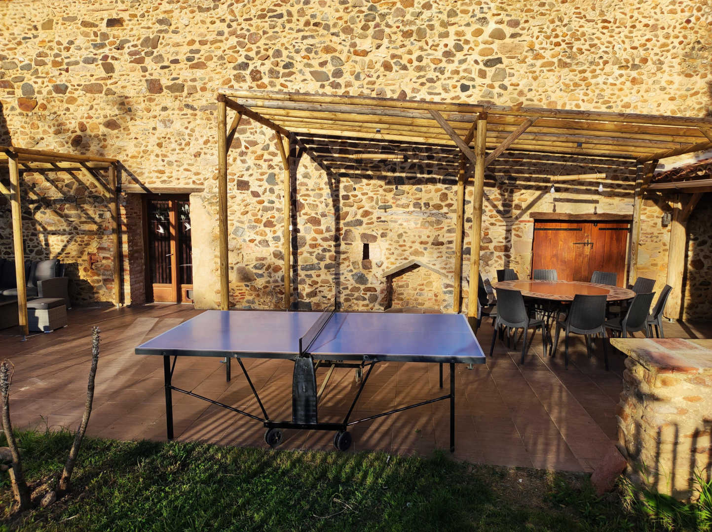 Les extérieurs : grand jardin d’environ 1 hectare qui entoure le gîte et qui donne ensuite sur les champs voisins. Au total 2 terrasses couvertes, une table de ping-pong, un terrain de pétanque à côté de la piscine et une balançoire.