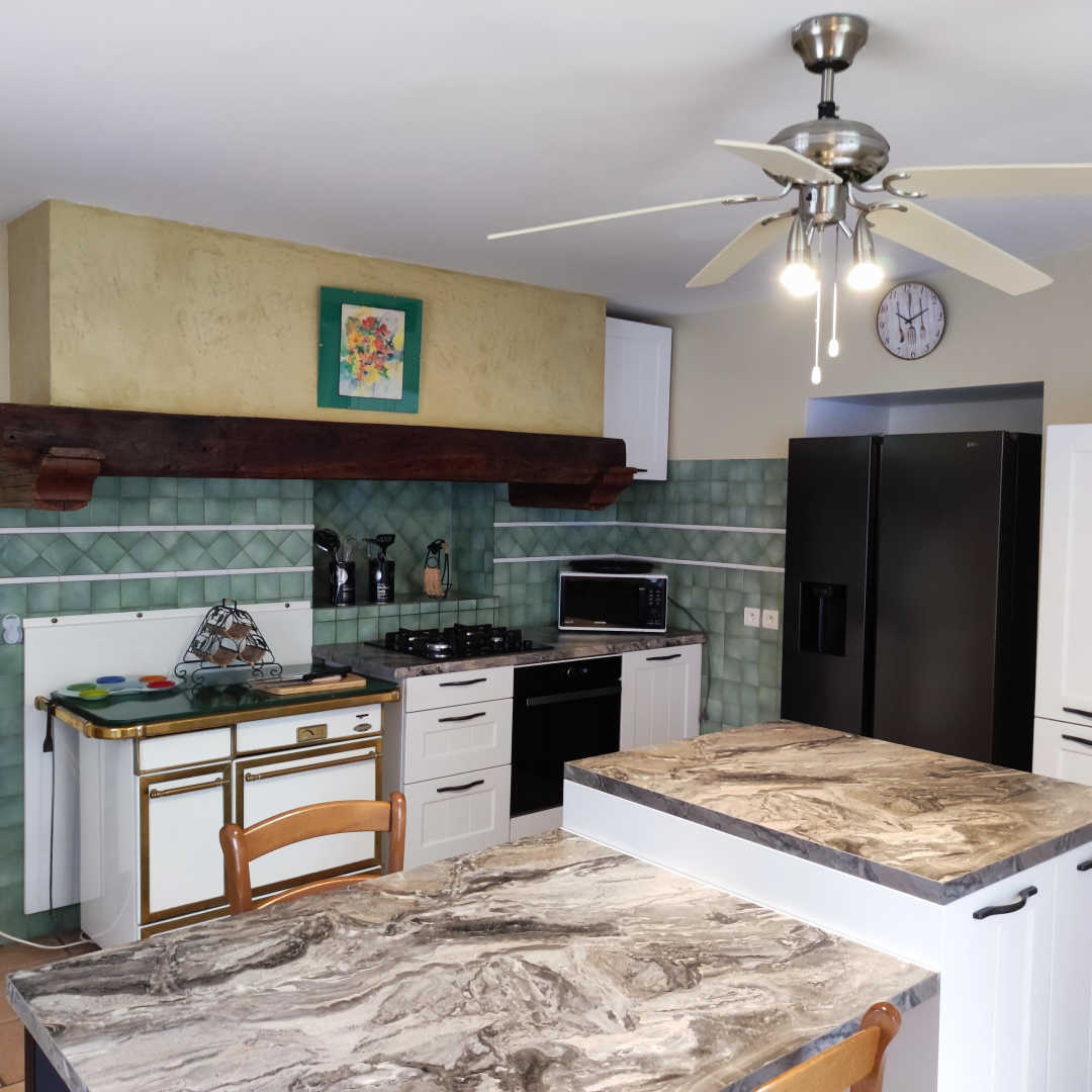 – Cuisine toute équipée : four, micro-ondes, grille-pain, bouilloire, cafetière à filtre et à dosettes Tassimo®, presse-agrume, appareil à raclette, lave-vaisselle et réfrigérateur américain.
