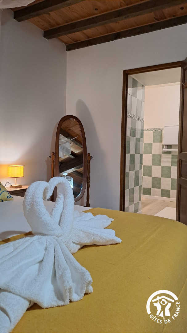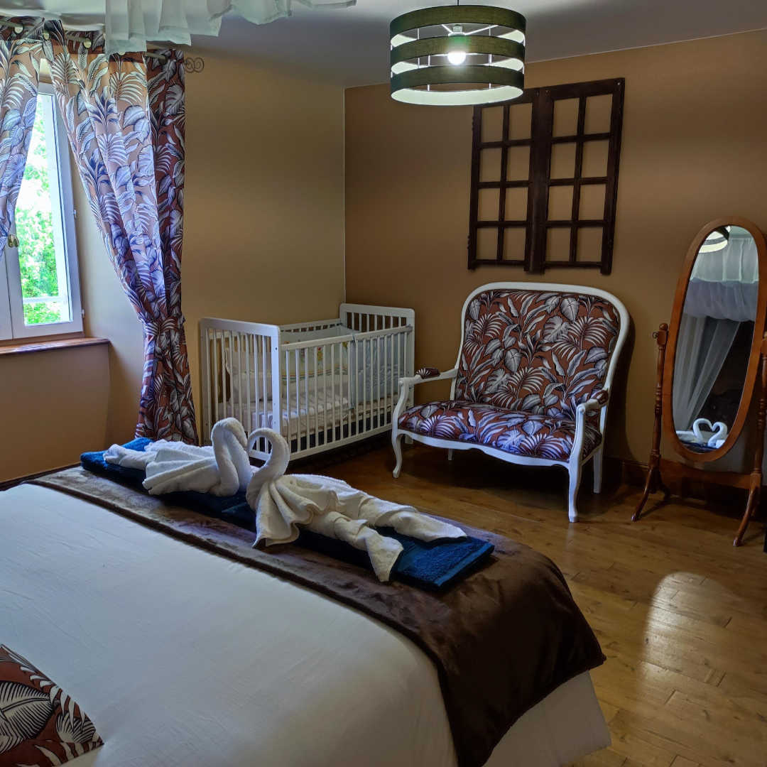 * Grande chambre parentale avec lit en 160x200cm et sa salle d’eau privative + un lit enfant en 70cm pour un couchage supplémentaire