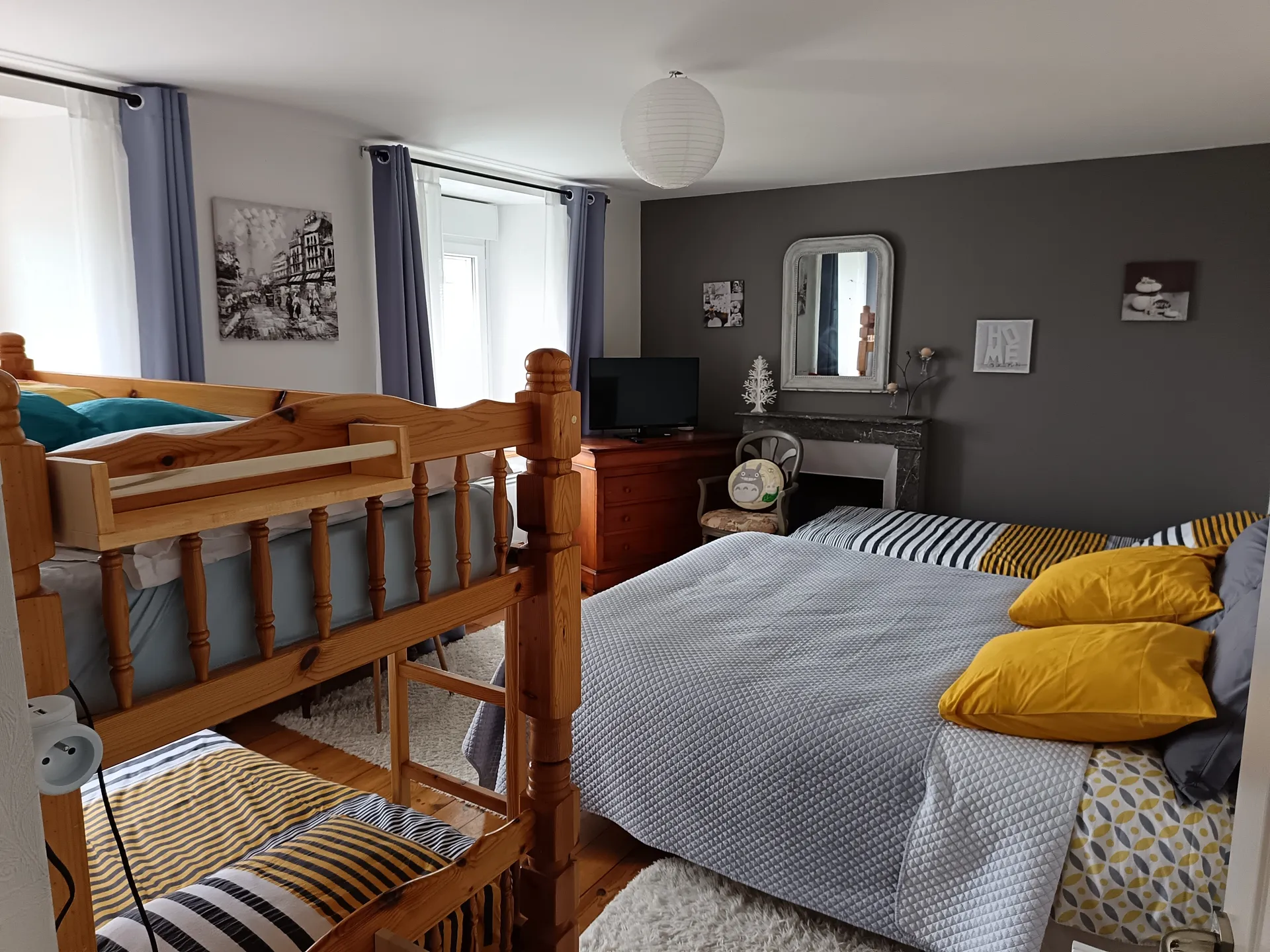 Maison sur 2 niveaux avec deux chambres : 1 chambre avec 1 lit 140, et 1 chambres avec 1 lit 160 et 2 lits superposés 90.