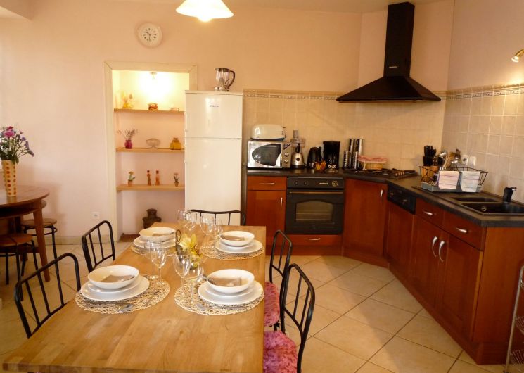 L’alloggio comprende: ingresso, cucina (microonde, lavastoviglie, lavatrice), soggiorno (camino, giocatore DVD, 2 divani), 1 camera da letto (1 letto 140), 1 camera da letto (1 letto 160), 1 HP (2 letti 90), 1 bagno, 1 bagno/WC, 1 WC. Cantina. Terrazza sotto pergola. Ping-pong.