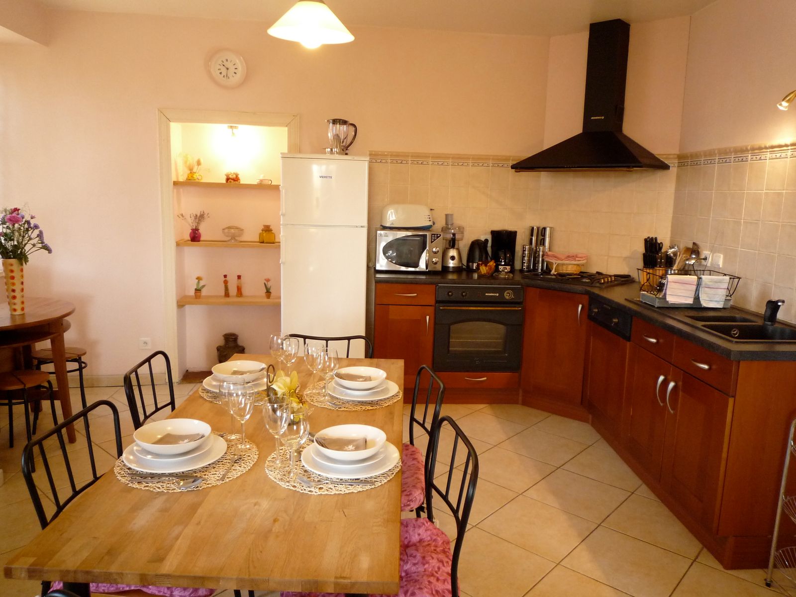 L’alloggio comprende: ingresso, cucina (microonde, lavastoviglie, lavatrice), soggiorno (camino, giocatore DVD, 2 divani), 1 camera da letto (1 letto 140), 1 camera da letto (1 letto 160), 1 HP (2 letti 90), 1 bagno, 1 bagno/WC, 1 WC. Cantina. Terrazza sotto pergola. Ping-pong.