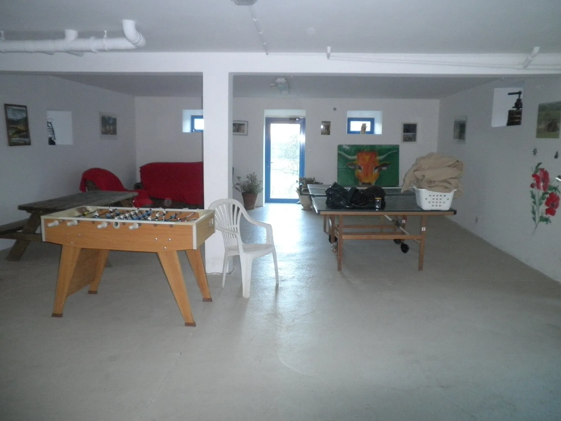 Rez de cour : Hall d’entrée, salle d’eau, buanderie (lave et sèche-linge, fer), salle de jeux de 60 m² avec ping-pong, baby-foot, canapé.
