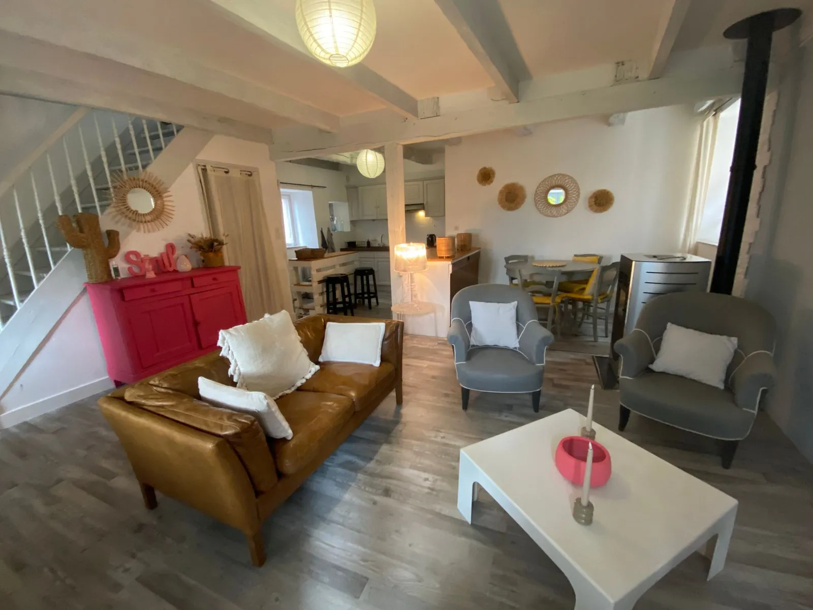 Au rez-de-chaussée : buanderie (lave-linge / WC), coin-cuisine (lave-vaisselle) / Séjour (canapé, télévision, accès internet / wifi, poêle à granulés). Au 1er étage : 1 chambre (1 lit 140) avec accès à un autre WC, 1 chambre (1 lit 140) avec accès à la salle d’eau (1 vasque, douche et baignoire), Chauffage complet électrique, cour close dallée privée (10m²), parking communal à 50m, salon de jardin, plancha.