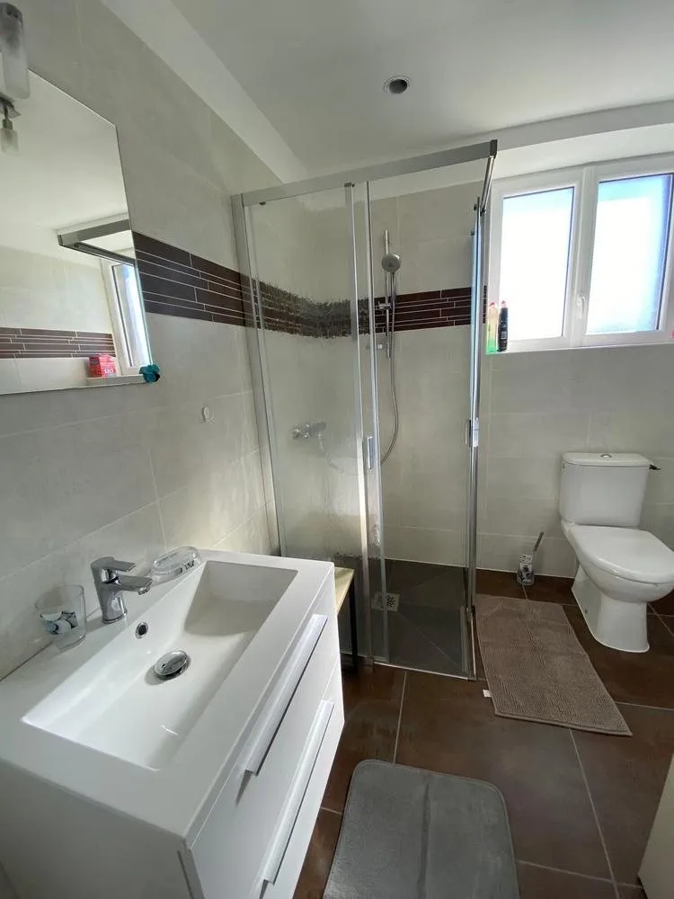 Maison avec au 1er étage : grande cuisine avec salle à manger, salon, 2 chambres, une salle de bain, WC, buanderie. Au 2éme étage : 4 chambres, 2 salles de bain.