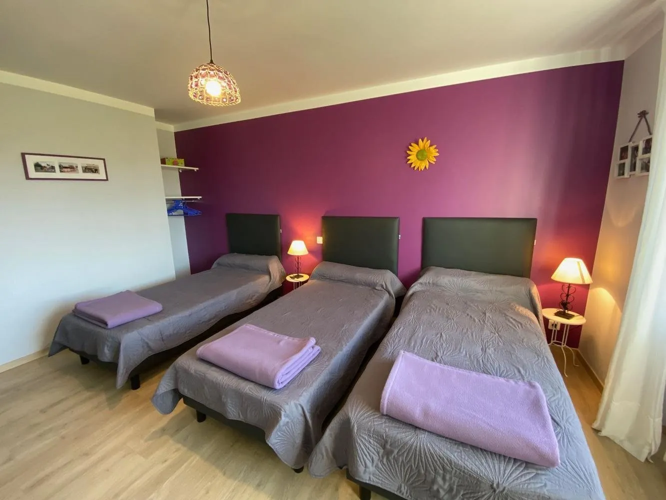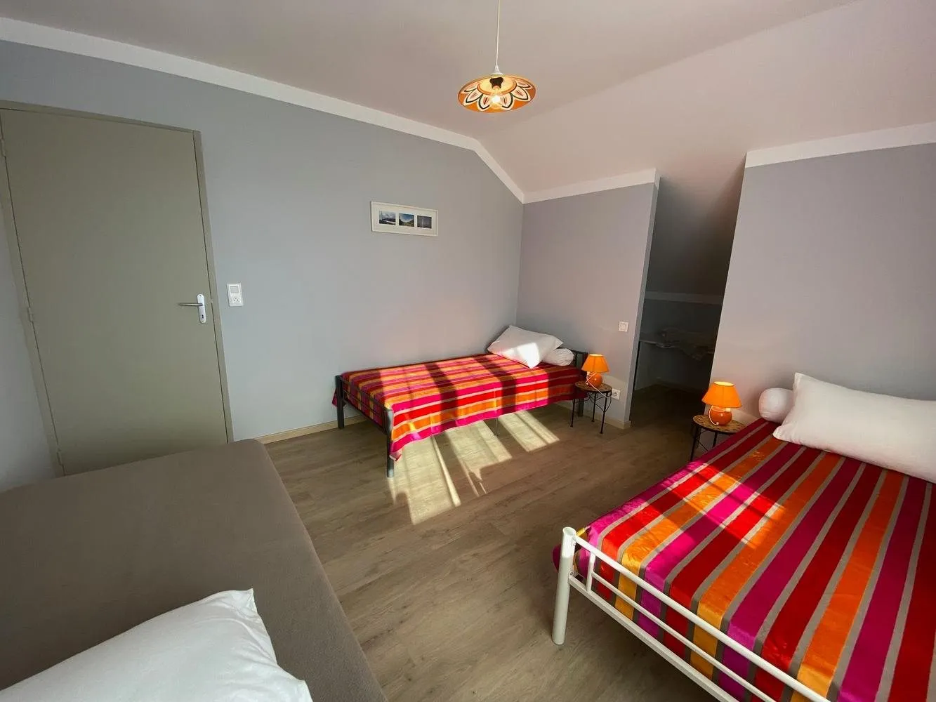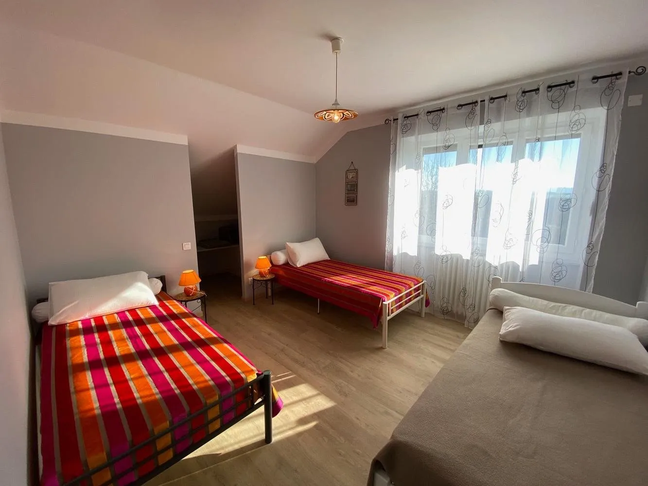 Au total 14 couchages répartis en 7 chambres (4 lits en 160, 1 lit en 140, 1 lit et 6 lits en 90).