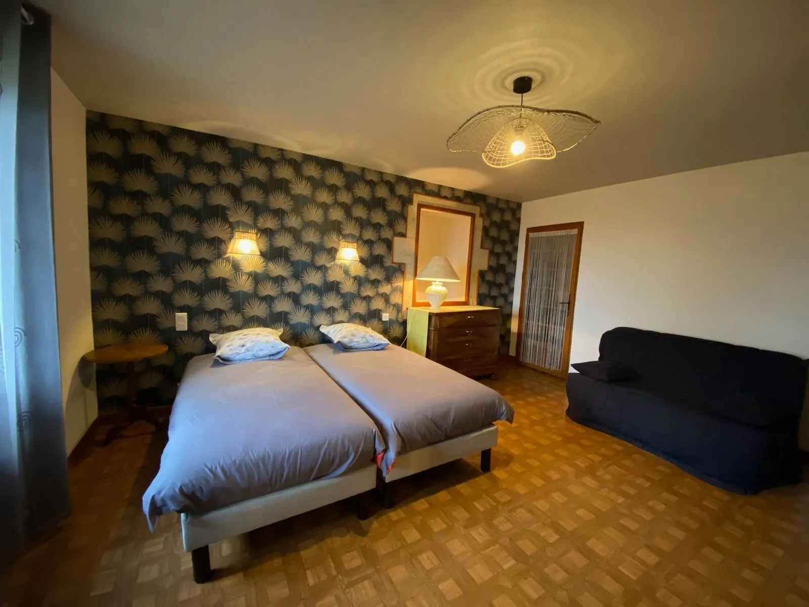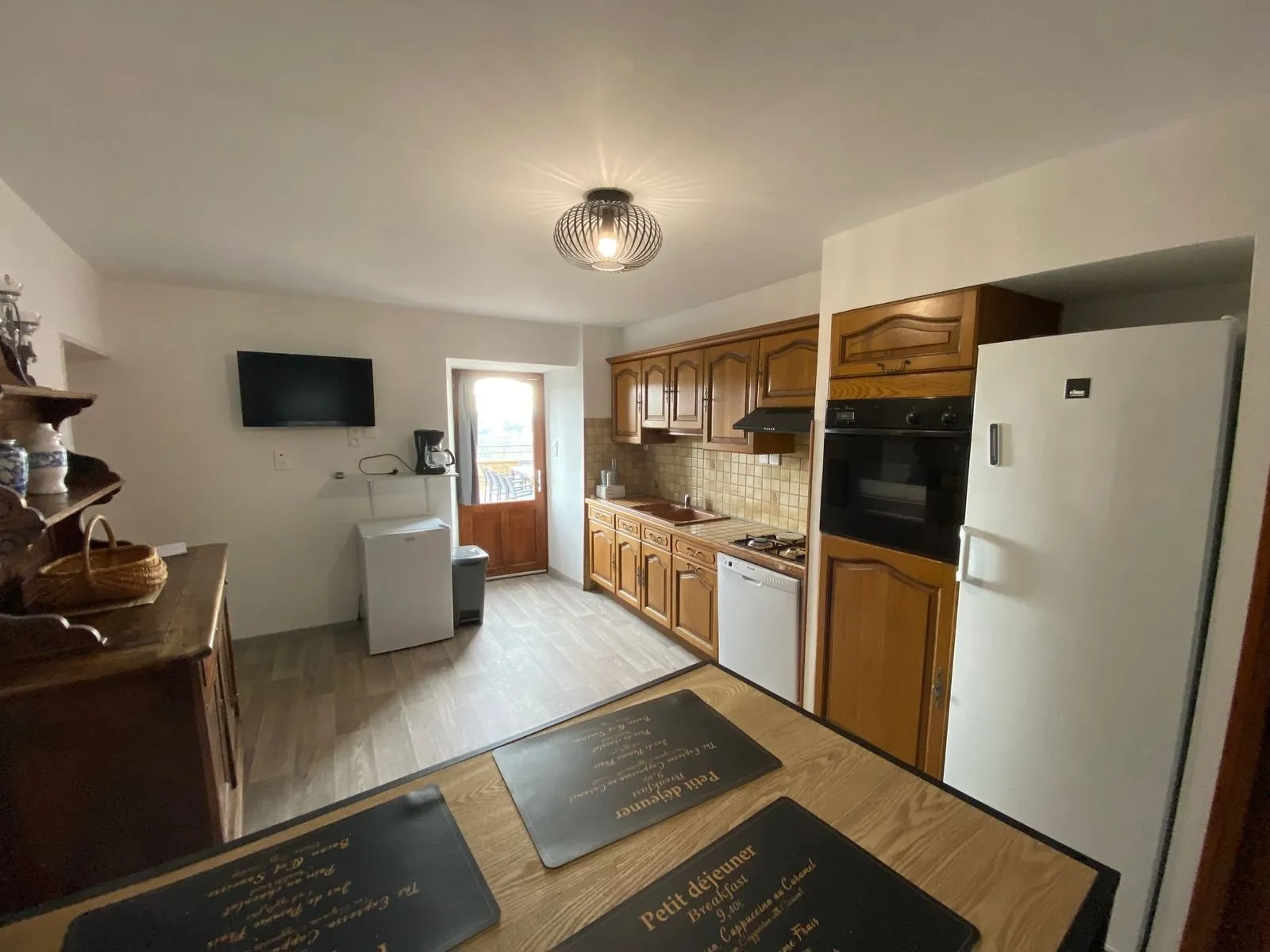Gîte mitoyen, aménagé sur 1 niveau (caves au rez-de-chaussée inaccessibles), dans un hameau, en campagne, à proximité de la maison des propriétaires et de leur exploitation agricole (ovins lait).