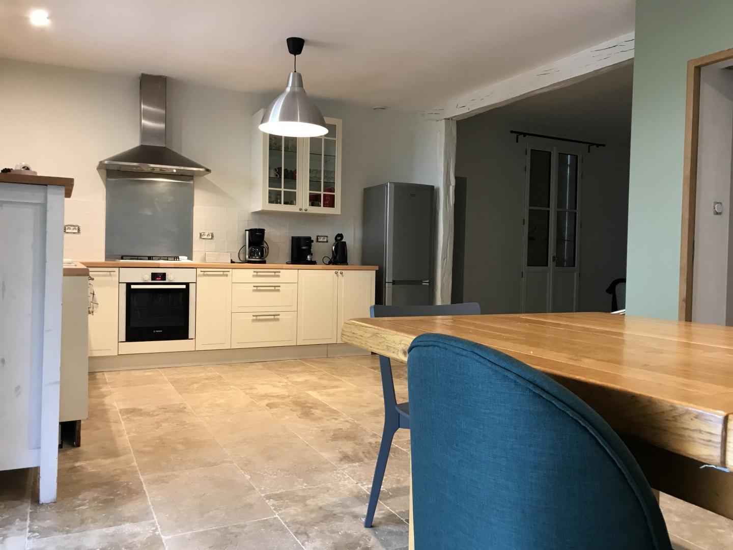 L’hébergement dispose d’une grande cuisine salle à manger avec grande baie vitrée donnant sur la terrasse couverte entièrement refaite en bois, une petite pièce cheminée avec 2 fauteuils, buanderie, salon de 22 m2, 4 chambres dont 2 de plus de 20m2 (2 lits 160, 1 lit 140, 4 lits 90), salle d’eau/wc (5m2), salle de bain (6m2), wc. Draps fournis et lits faits à l’arrivée.