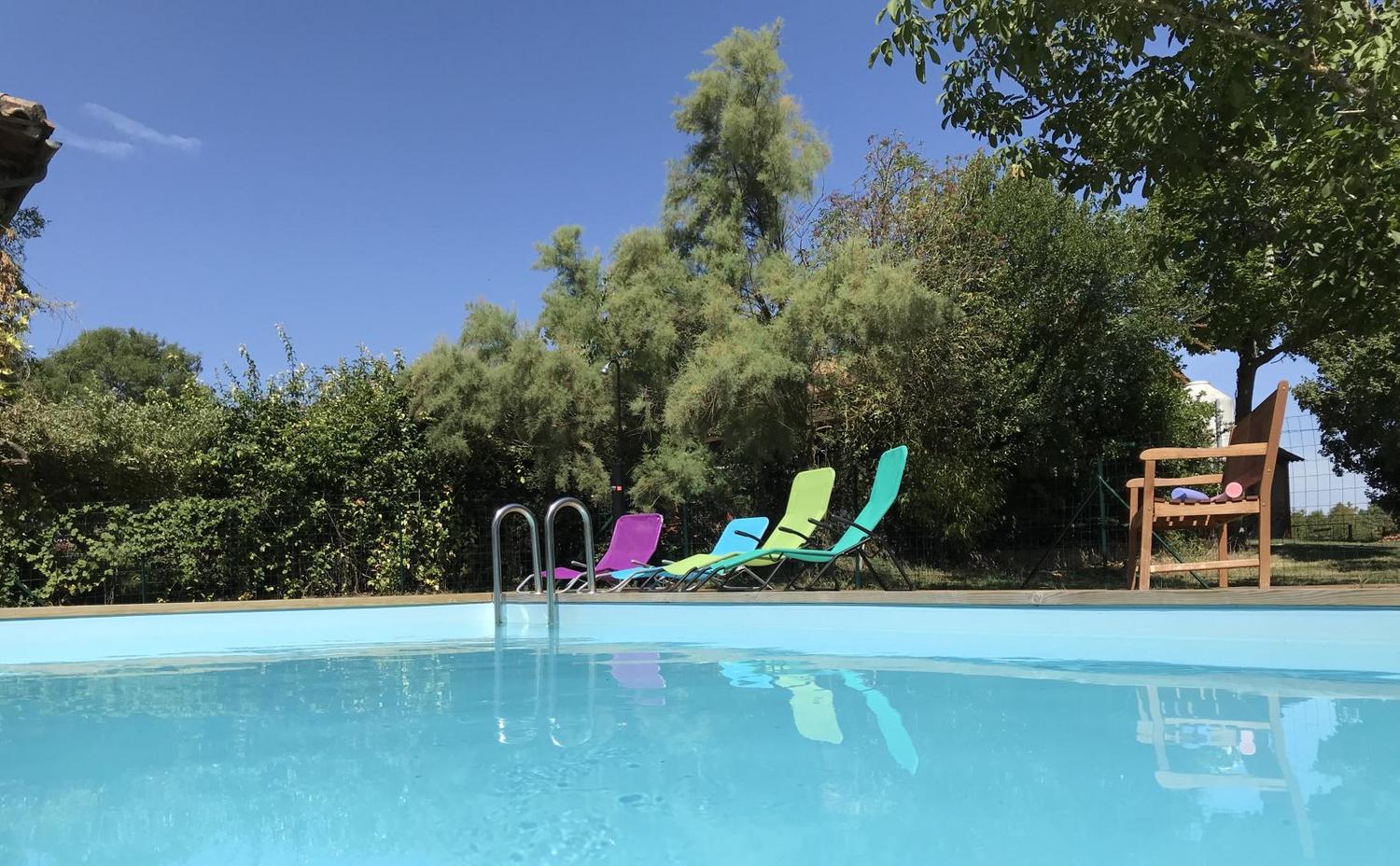 Sur ce domaine agricole familial cette maison ancienne de 164m2 tout en rez-de-chaussée vous permettra de passer d’agréable vacances à la campagne. Appréciez la terrasse couverte de 36m2 sans vis-à-vis qui donne sur votre espace vert arboré de 500m2 et sur le parc du domaine (2 ha avec cèdres, pins parasols…) avec piscine privée semi-enterrée (4x6m – 1,38 prof) sécurisée par une clôture (ouverture en juin).
