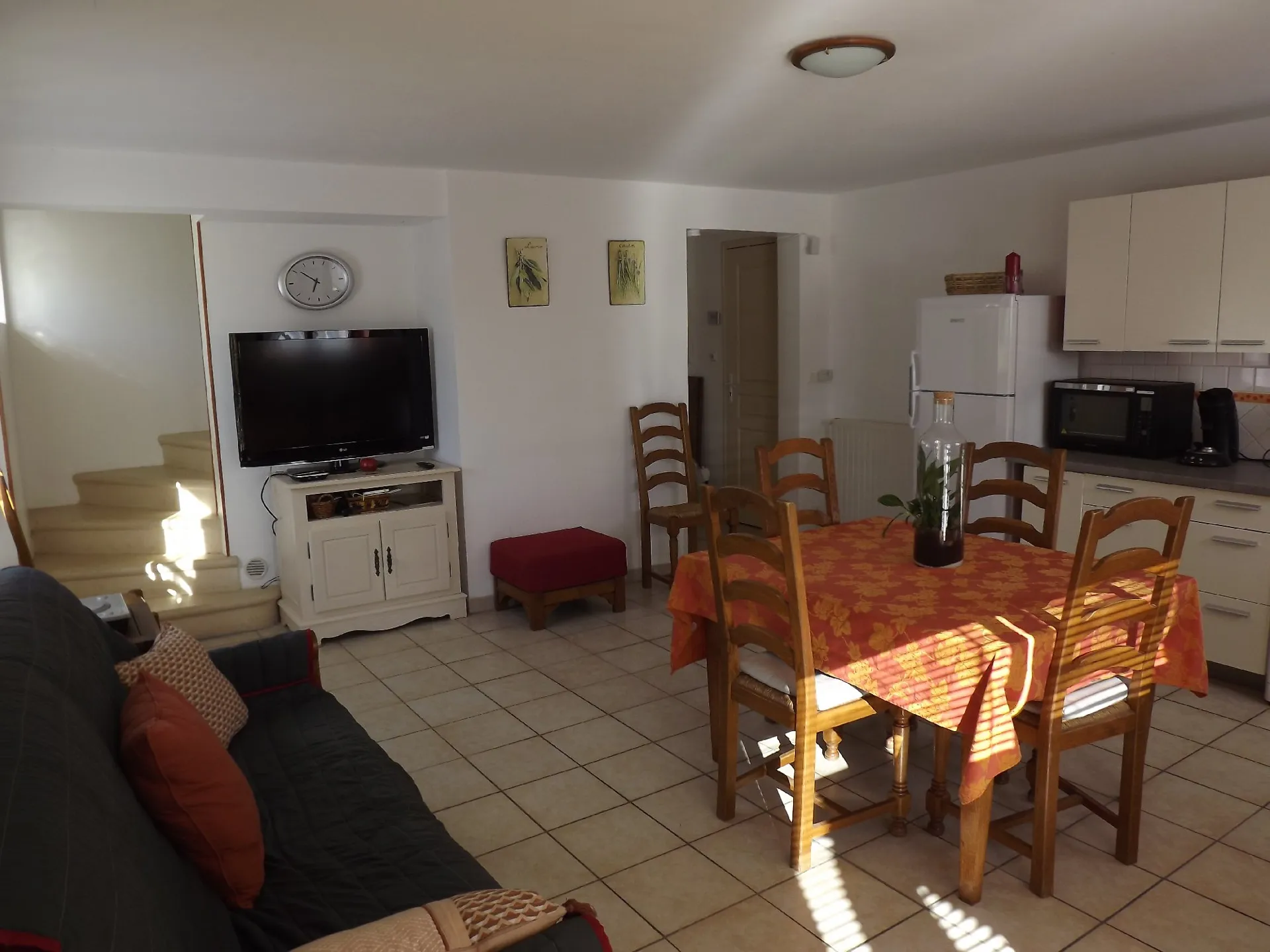 Al piano terra: soggiorno con cucina/soggiorno, WC, una camera con letto matrimoniale (140 cm) e bagno privato.