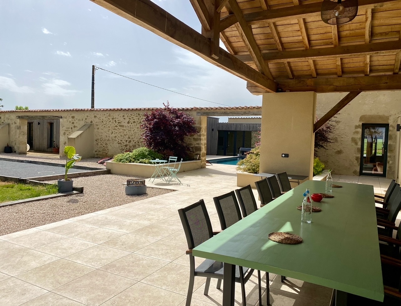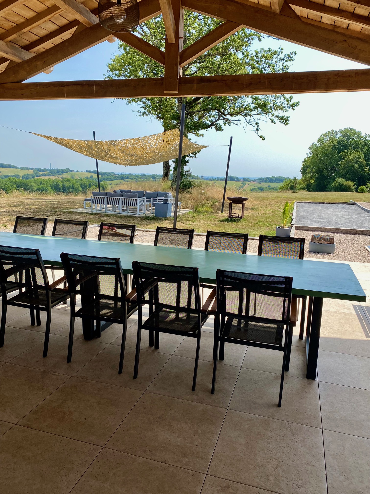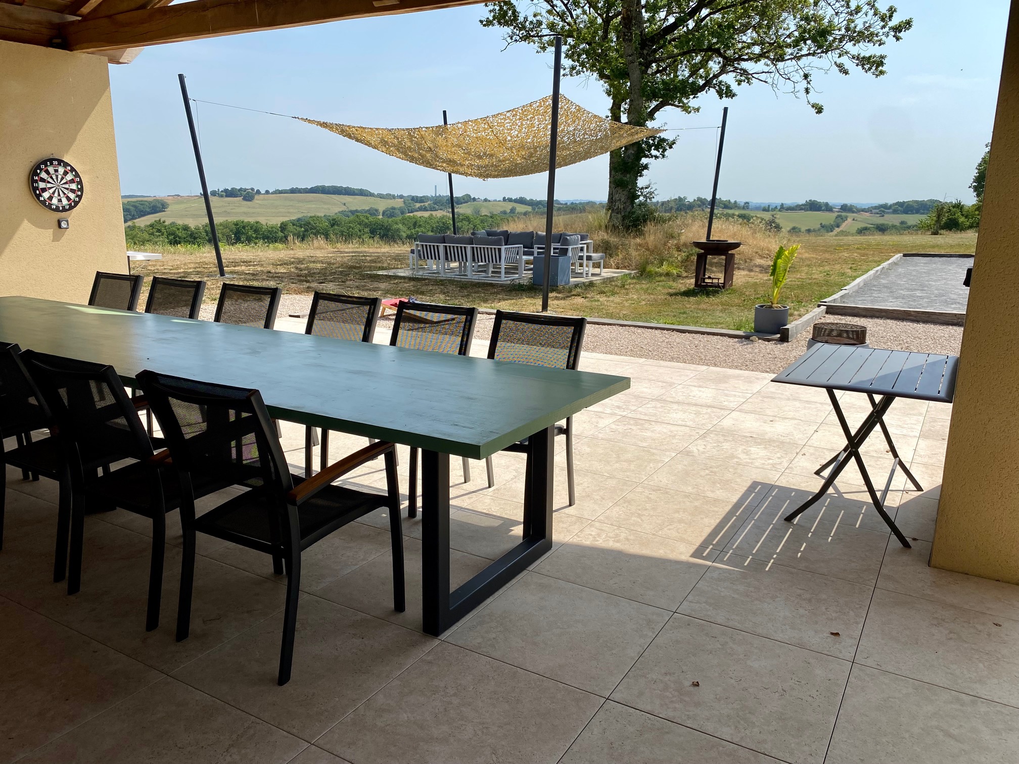 A l’extérieur : une piscine chauffée de 8*4 de début Mai à fin Septembre, terrasse extérieure + cuisine d’été couverte (avec un lave-vaisselle, un petit frigo et machine à glaçons) pour un total de 150 m². Terrain de pétanque, barbecue, brasero, salon de jardin. Terrain extérieur de 6 000 m². Parking privatif. Jeux de société enfants et adultes. Lave linge, sèche linge.