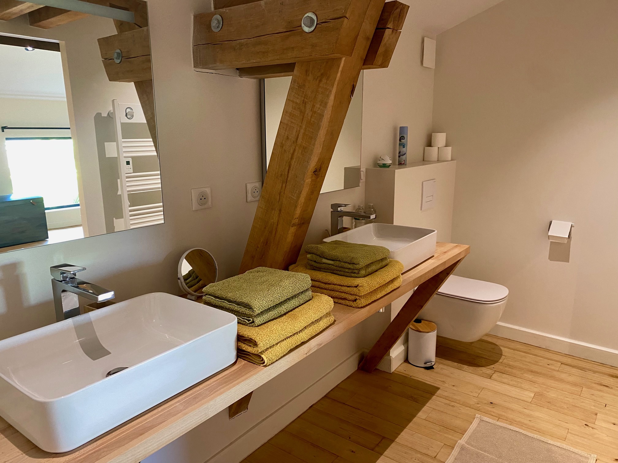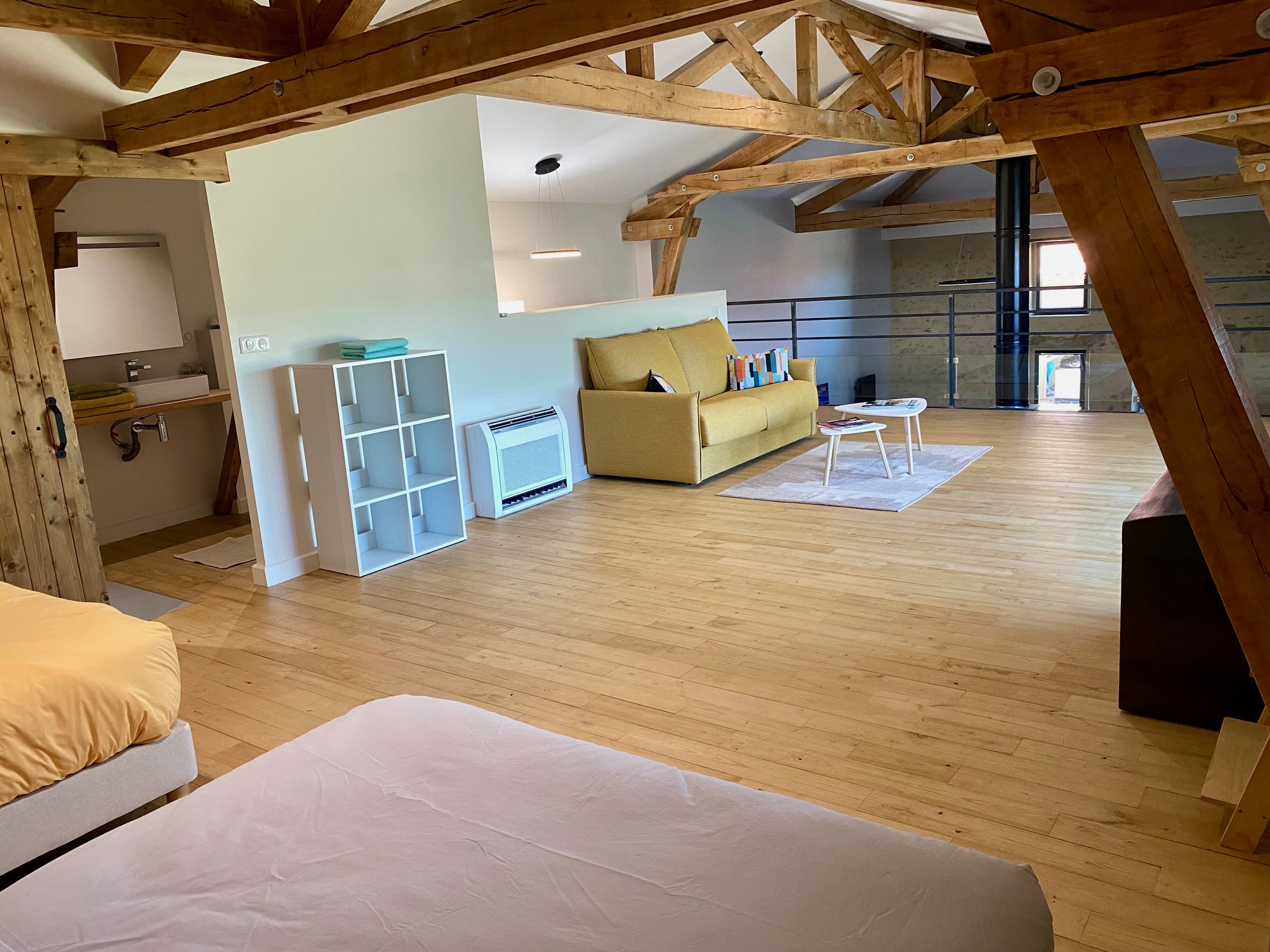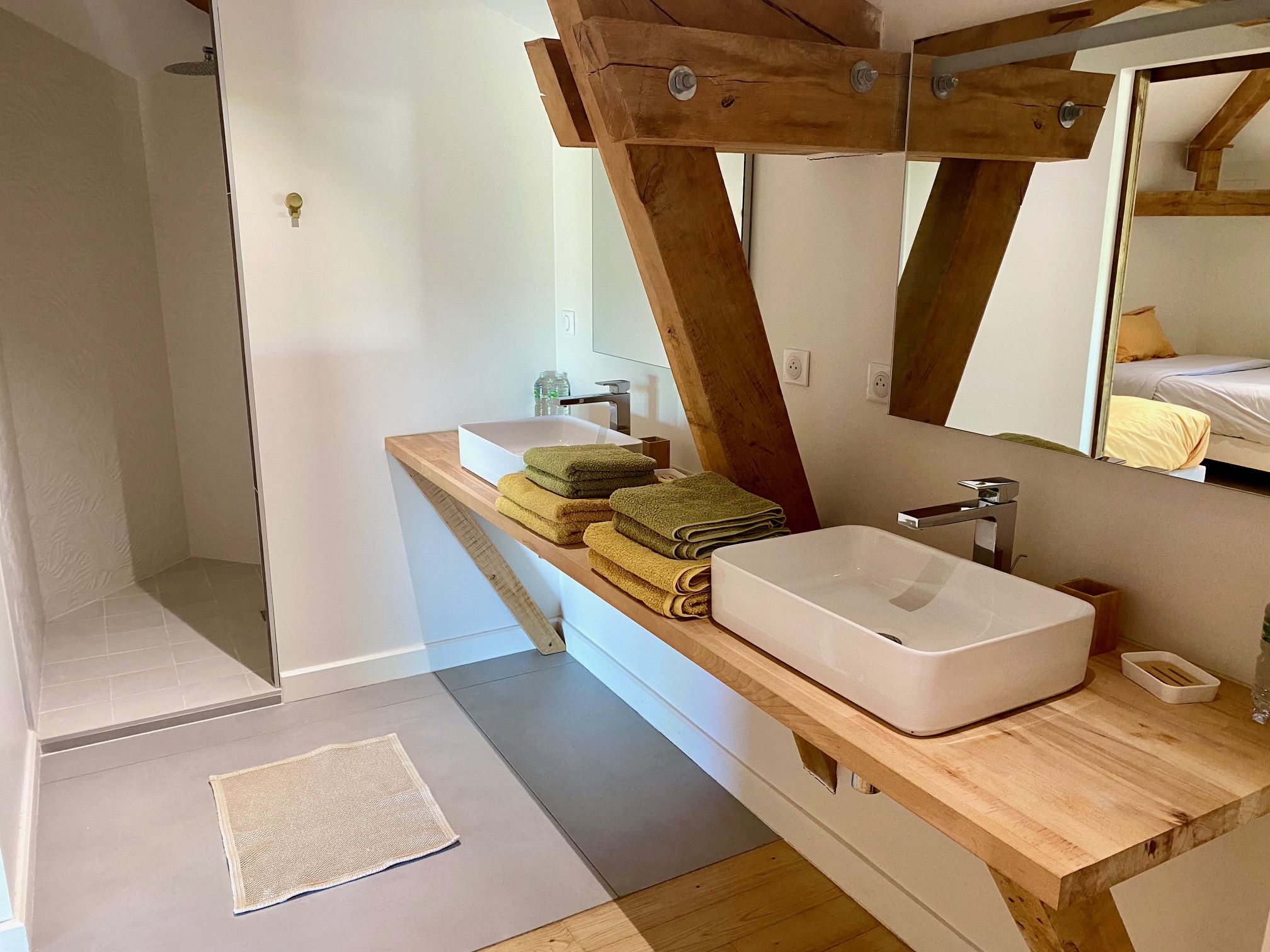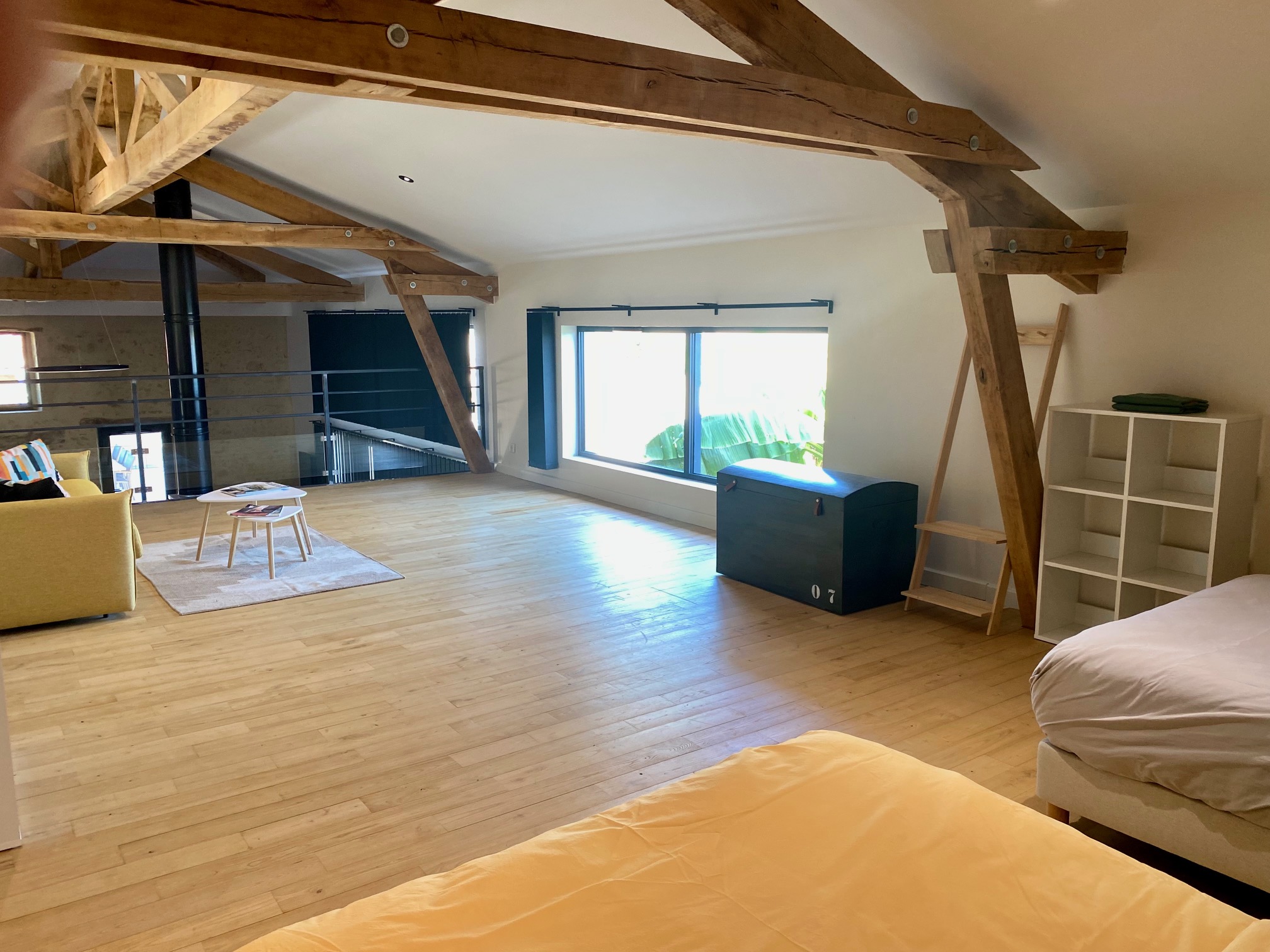 A l’étage vous trouverez également 2 lits supplémentaires en 140*200 situés dans une grande mezzanine avec salle de bain et WC privatifs.